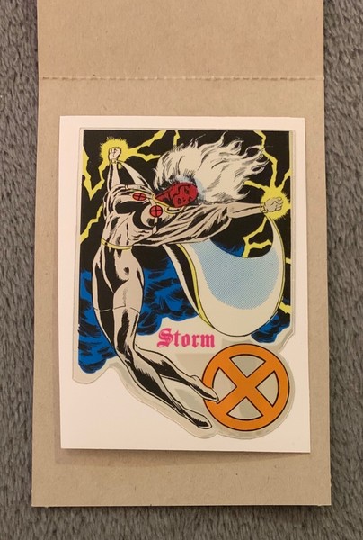 Abs-cards has one of the most comprehensive checklists for marvel vending stickers (you click on vending stickers on left side menu, or unauthorized vending stickers). Not all variations are listed, and for those, my checklist is ebay. The issue is locating your sticker in the sets listed, like on abs-cards. The stickers dont have a set listed on them so have to figure it out. They have the Cyclops and Jean under the Regular Vending Sticker section, so that suggests to me it's a licensed sticker. What probably happened with the Storm is the one with the copyright was official, and the other was unauthorized vending. Just using same art. The difference in text of the Storm name is a giveaway it's a different set and not just a variation. One thing in common in a certain prism vending sticker set is the design of the name, etc.