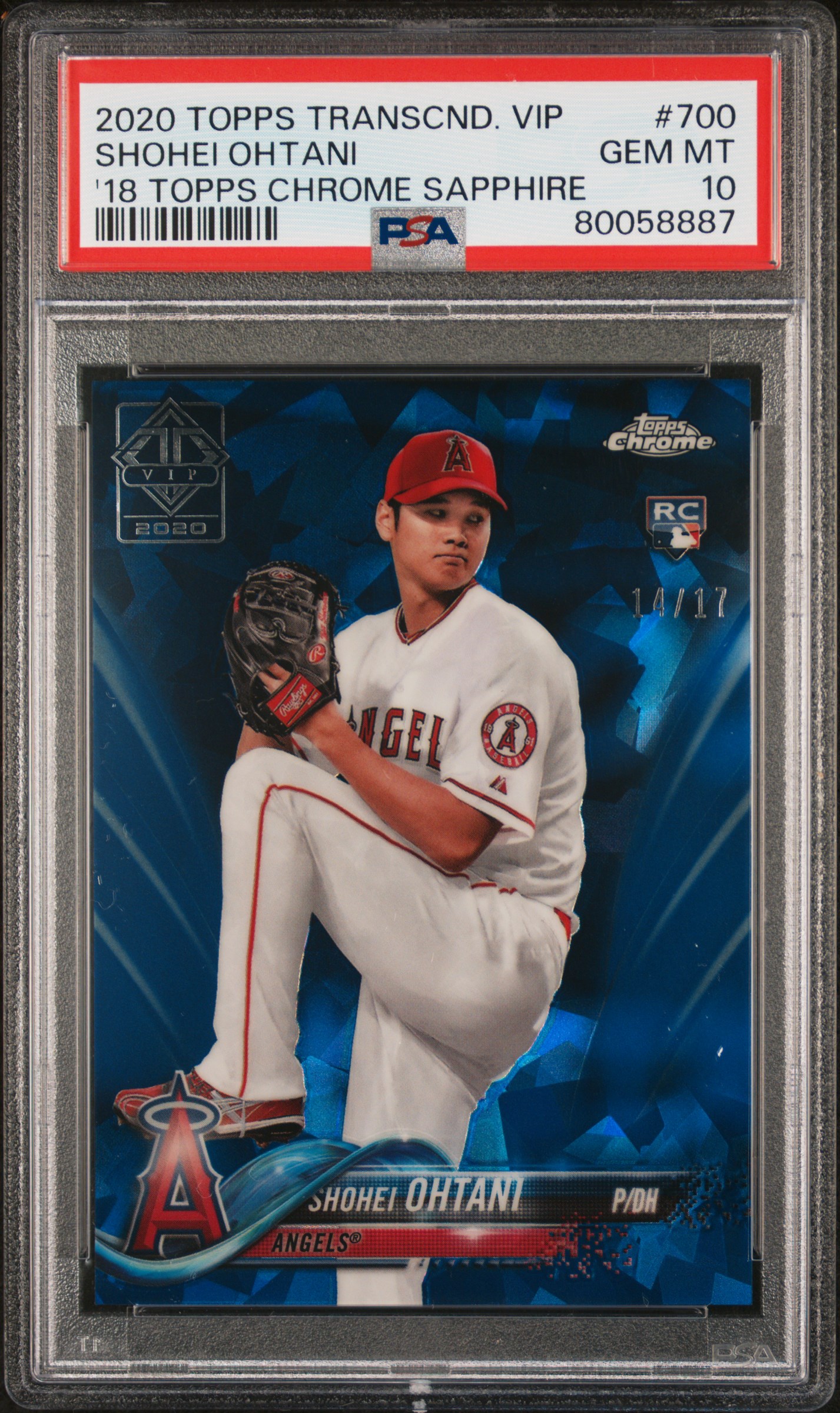i just checked and i dont have an image of mine.... a 2020 Topps Chrome Gold Wave Ohtani The slab is one of those old gens made for thick cards. the card is in it backwards, has mylars on BOTH sides of the card. just a mess to look at