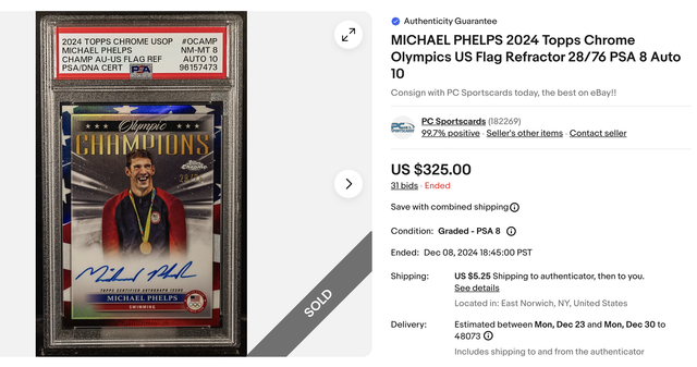 If no one saw, a Katie Ledecky red autograph out of 5 sold for $416 three days ago. 6-7 months ago, that was easily a $5000+ card. Oh, how quickly prices fall.