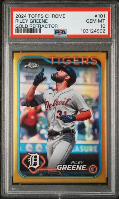 Added a few ... With the discontinuing of the Black parallel, perhaps sapphire gold will be what I run. Added the 2024 which came out so stunning this year. His image blending with the "Future Stars", chef's kiss. ![]() And I told you I love Pristine: ![]() (and apologies to the other Riley Greene thread, but this is the longer standing thread with more images.)