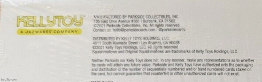 panini is making them now (the first ones were made by Kellytoy. not sure if Parkside printed them or not) actually right on the box. made by Parkside, distributed by Kellytoy