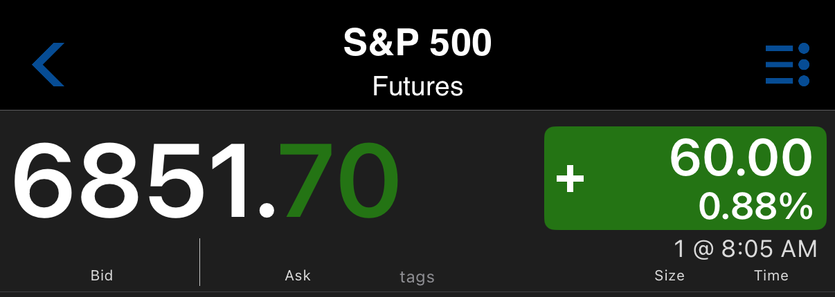 If 6700 breaks > get a nice drop and increased volatility Staying long and just watching today Worth noting Quote:
