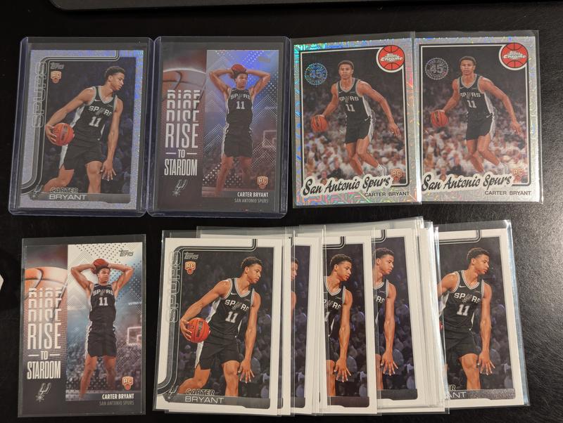 The Harrison Ingram is galactic ![]() 15 base Wemby, 8 bit Holo ![]() 15 castle base ![]() 20 Dylan Harper Rcs plus all the inserts ![]() 16 Carter Bryant RCs plus all the inserts pictured
