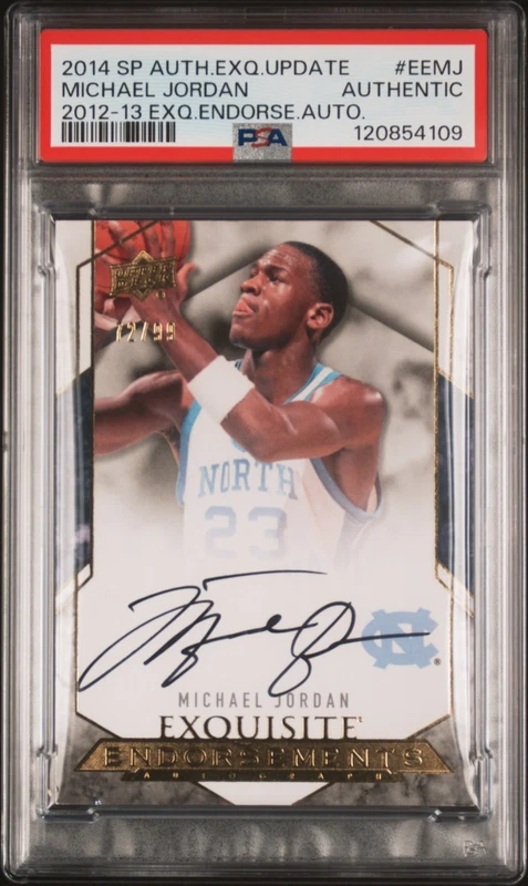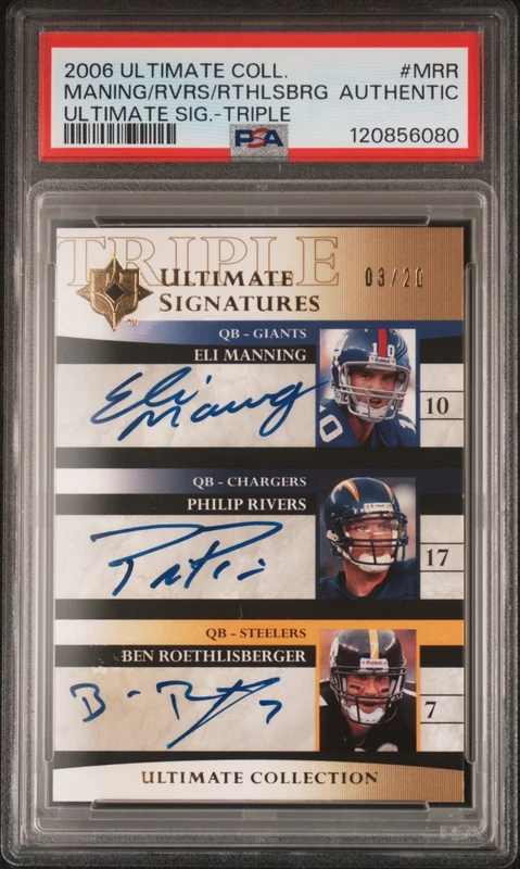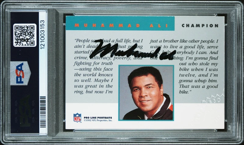 2014 SP Authentic Exquisite Update Endorsements Michael Jordan Auto /99 PSA Authentic - $5,000 ![]() 2004 Leaf Limited Tom Brady Auto Game Used Jersey Patch #'d /50 PSA Authentic - $2,750 ![]() 2019 Panini Select Patrick Mahomes II Field Level Signatures Auto #'d /50 PSA 9 - $2,500 ![]() 2025 Topps Chrome WWE The Rock Retrospective Autographs Auto BGS 8.5/10 - $2,350 ![]() 2020 Select Trevor Lawrence 2021 XRC Mystery Auto Tie-Dye Prizm Rookie /25 PSA 9 - $2,250 ![]() 2006 Ultimate Collection Triple Signatures Auto /20 PSA Authentic - $1,350 ![]() 2008 Ultimate Collection Signature Combos Eli Peyton Manning Dual Auto /35 PSA Authentic - $1,250 ![]() 1992 Pro Line Portraits Team NFL Autographs Muhammad Ali PSA Authentic 9 Auto (also comes with separate JSA LOA - lots of fakes on this card; this one totally legit) - $700