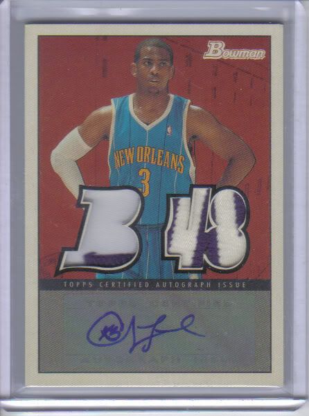 2009-10 Bowman 48 Dual Patches Auto Larry Bird 19/24 | eBay I am not to familiar with the set but the GU window looks to be cut by hand and the auto is very small. I often see his auto being larger then the sticker. What do you guys think? |