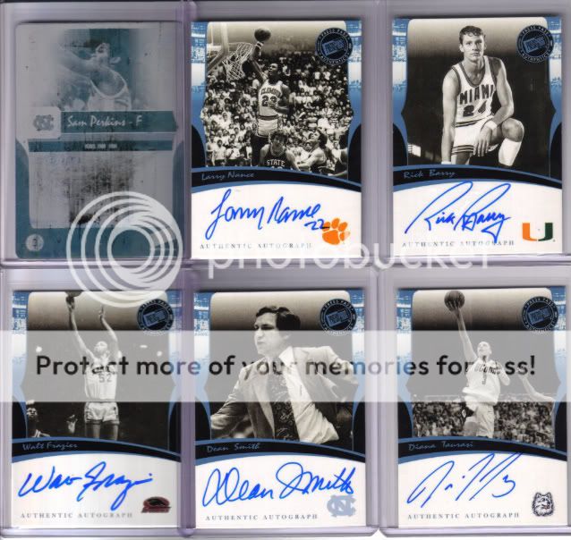 Nice but boring Rudy Gay gu jersey x2 Ronnie Brewer gu jersey David Lee gu jersey Henry Bibby auto Ronnie Brewer auto x2 ![]() The lack of variety Stacey Augmon auto x3 Reggie Theus auto x4 Brad Daugherty auto x6 PM me if you're interested in any of the above as I'll be happy to part with the excess at no cost. Also fun to see the signature variations. ![]() The good stuff Sam Perkins Cyan Printing Plate Larry Nance auto Rick Barry auto Diana Taurasi auto ![]() Dean Smith auto ![]() Walt Frazier auto ![]() ![]()