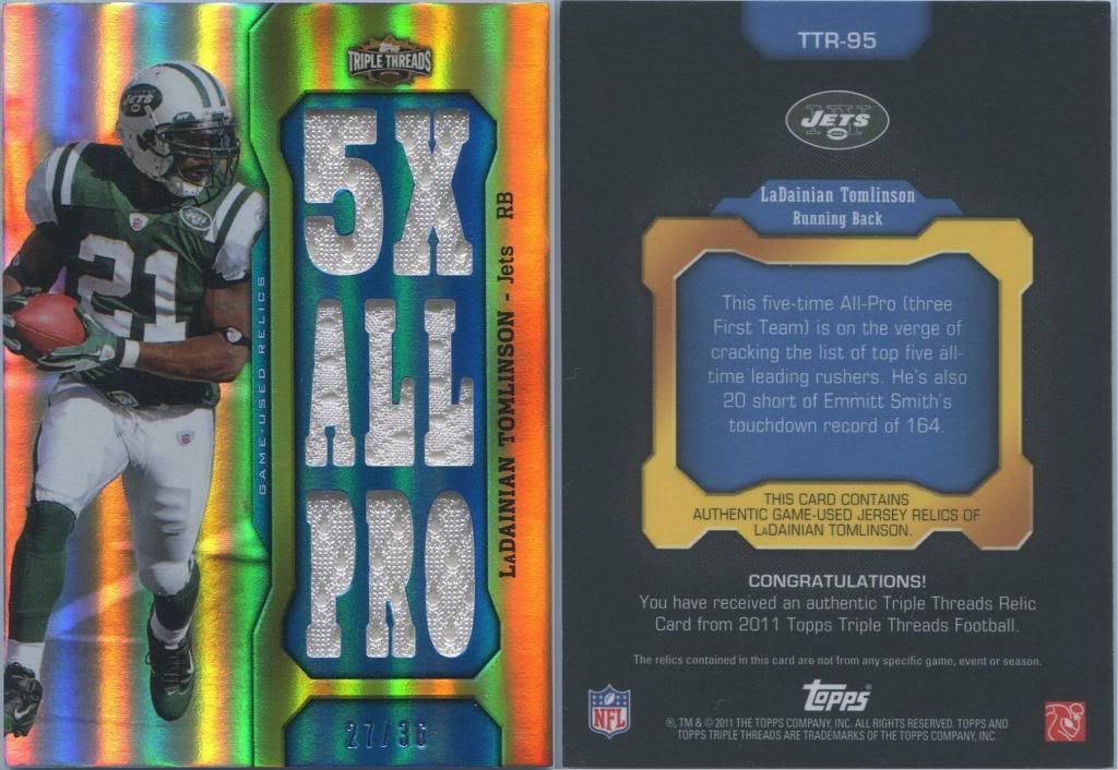 Football - 2011 Topps Triple Threads LaDainian Tomlinson 27/36 SP "5 X ALL PRO"