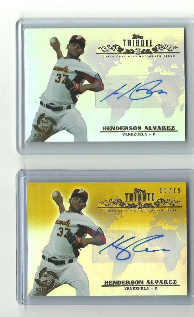 ALL CARDS ARE OBO! Deven Marrero 2011 Topps Chrome USA baseball auto /199 $8.50 Michael Lorenzen 2011 Topps Chrome USA baseball auto /199 $7.00 Dominic Ficociello 2011 Topps Chrome USA baseball auto /199 $7.00 DJ Baxendale 2011 Topps Chrome USA baseball auto /199 $7.00 Marcus Stroman 2011 Topps Chrome USA baseball auto /199 $7.00 Jordan Henry 2010 Bowman Platinum refractor auto $7.00 Greg Maddux 2014 Topps Series 1 commemorative rookie patch card $5.00 Salvador Perez 2014 Topps Series 1 relic $2.00 Tyler Pastornicky 2011 Topps Finest orange refractor /99 $2.00 Nick Maronde Diamondbacks Topps Chrome refractor auto /499 $3.00 Alfredo Marte Diamondbacks Topps Chrome refractor auto /499 $3.00 Beau Taylor Athletics Bowman Platinum auto $1.50 Kameron Uter Leaf Perfect Game auto $1.50 Hanley Ramirez Dodgers Topps Triple Threads purple /650 $1.50 Gary Carter Expos Topps Triple Threads purple /650 $1.50 CC Sabathia Yankees Topps Triple Threads patch /36 $5.00 Jeff Ames Rays Bowman Platinum auto $1.50 SOLD ITEMS: Ben Zobrist Rays Topps Tribute WBC patch /126 $4.00 Eric Aybar Angels Topps Tribute WBC gold parallel /25 $5.00 Henderson Alvarez Marlins Topps Tribute WBC gold parallel auto /15 $10.00 Henderson Alvarez Marlins Topps Tribute WBC auto $3.00 Didi Gregorious Diamondbacks Topps Chrome auto $1.50. Alfredo Marte Diamondbacks Topps Chrome auto $1.50 Bruce Rondon Tigers Topps Chrome auto $1.50 Craig Kimbrel Braves Topps Chrome RC auto $12.00 BJ Upton 2004 Bowman game worn Jersey relic $3.00 Robinson Cano Yankees Topps Triple Threads onyx /50 $3.00 Craig Kimbrel Braves Topps Tribute WBC patch /131 $8.00 Jake Odorizzi Rays Topps Triple Threads patch auto /99 $5.00 Lou Brock Reds Topps Tier One game used bat relic /399 $2.00 John Smoltz Braves 2009 Destined For History patch $3.00 Mike Minor Braves 2007 USA Baseball auto $7.00 Craig Kimbrel Braves Topps Chrome sepia /75 $5.00 Tyler Pastornicky Braves Topps Chrome RC blue refractor /199 $1.00 Brian McCann Braves 2013 Gypsy Queen mini patch $3.00 Craig Kimbrel Braves Topps 2002 All Star Game Workout Jersey patch $3.00 Adam Jones WBC Tribute auto $15.00 Add $.60 if shipped in a plain white envelope. Add $2.00 if shipped in bubble mailer. PayPal only please. Thanks for looking! PM me with any questions. Last edited by Meaghann32; 02-26-2014 at 03:36 PM. Reason: UPDATED LIST |