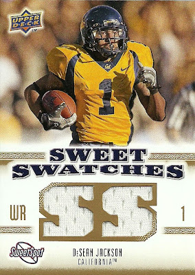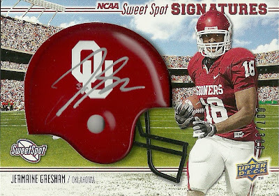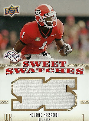 Sean Lee RC Percy Harvin Marcus Easley RC Rashard Mendenhall Antonio Brown RC Matt Ryan Jeremy Maclin Jermain Gresham Sweet Spot Signatures #007/300 ![]() Pack 2: Devin Hester Tom Brady Taylor Price RC James Starks RC Aaron Rodgers Rob Gronkowski RC Taylor Mays RC Javarris James Sweet Spot Signatures #134/300 ![]() Pack 3: Jason Campbell Anquan Boldin Joshua Cribbs Ray Rice Levi Brown (Troy QB) RC John Skelton RC DeSean Jackson DeSean Jackson Sweet Swatches (white) ![]() Pack 4: Ryan Grant Jimmy Graham RC Jason Pierre-Paul RC Matt Moore Eli Manning Jevan Snead RC Sidney Rice Kenny Britt Sweet Swatches (blueish) ![]() Pack 5: Calvin Johnson Brett Favre Armanti Edwards RC DeAngelo Williams Carlton Mitchell RC Kevin Kolb Jonathan Crompton RC Sweet Swatches Knowshon Moreno (white) ![]() Pack 6: Chris Johnson Jonathan Stewart Jerry Hughes RC Ben Roethlisberger Bryan Bulaga RC LaDainian Tomlinson Earl Thomas RC Mohamed Massaquoi Sweet Swatches (white) ![]() Set completion: 42/100 (42%), including 18 rookies Extras: 0 Decent, though not as much as I hoped for for the money. All the hits are currently for trade--I'm mainly looking for the Brandon Graham and Brandon Minor UMich helmets (whatever variation, though I prefer the one with the wings) and other UMich stuff. |