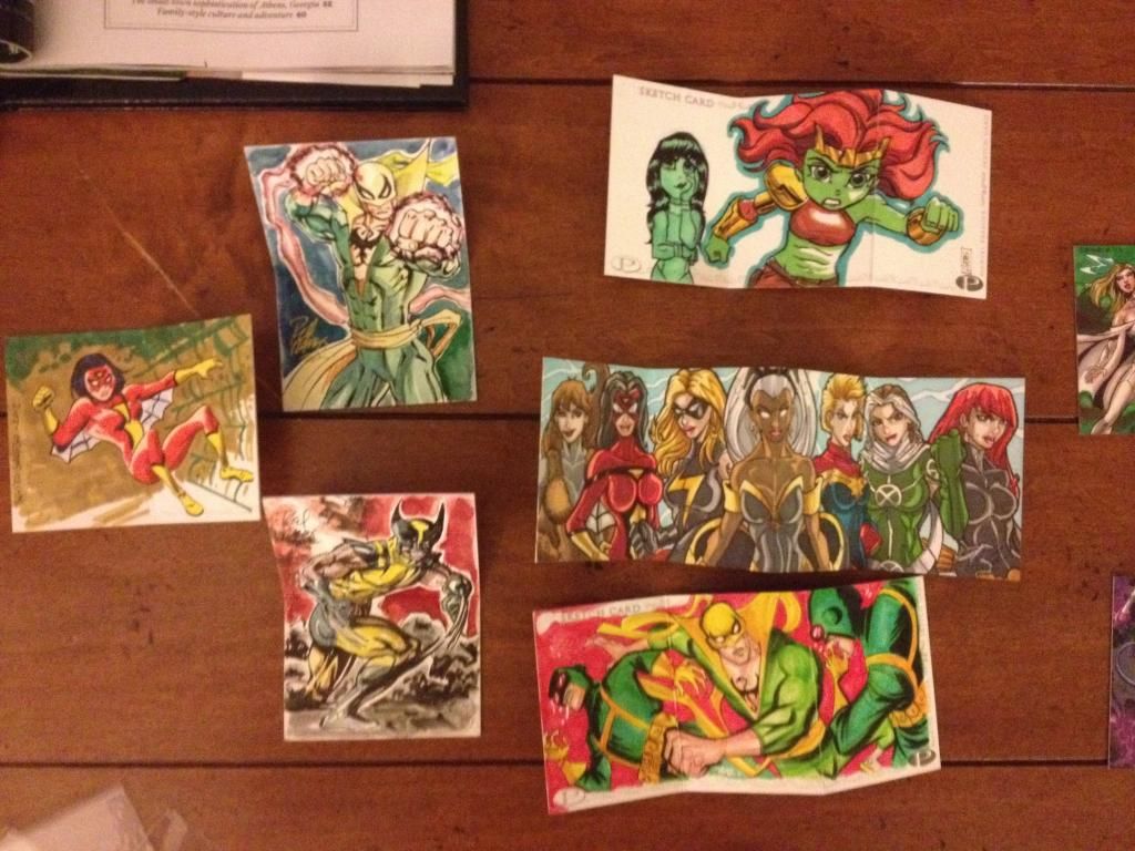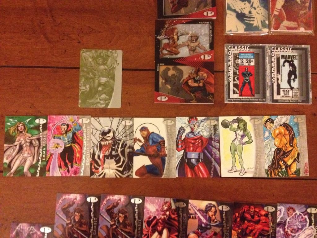 .Base Cards: ![]() Single Sketch Cards: Emma Frost, Dr. Strange, Venom, Hawkeye, Magneto, She Hulk, Sabertooth ![]() Emotions, Shadow Box, Classic Corner, Printing Plate: ![]() Hinge Cards [Front]: ![]() Hinge Cards [Back]: