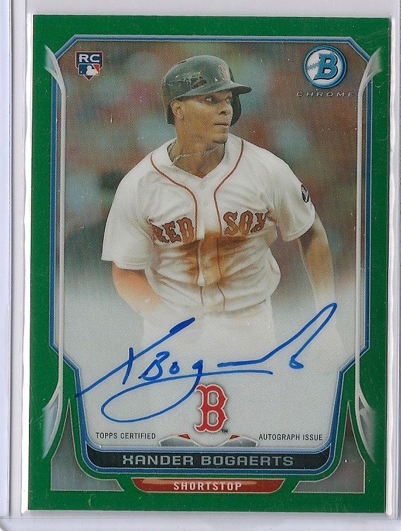 I have a 2012 Bowman Chrome Xander Bogaerts Blue Refractor Autograph #/150 9.5/w10 Auto. PM me if interested.