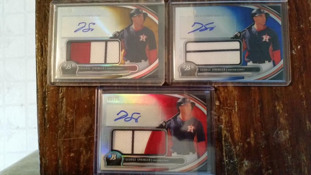 Hey guys...unfortunately some real world things have come up in my life and unfortunately am looking to part ways with most if not all of my beloved George Springer Collection. Going to see if anyone on here wants a shot at them before they go to eBay.