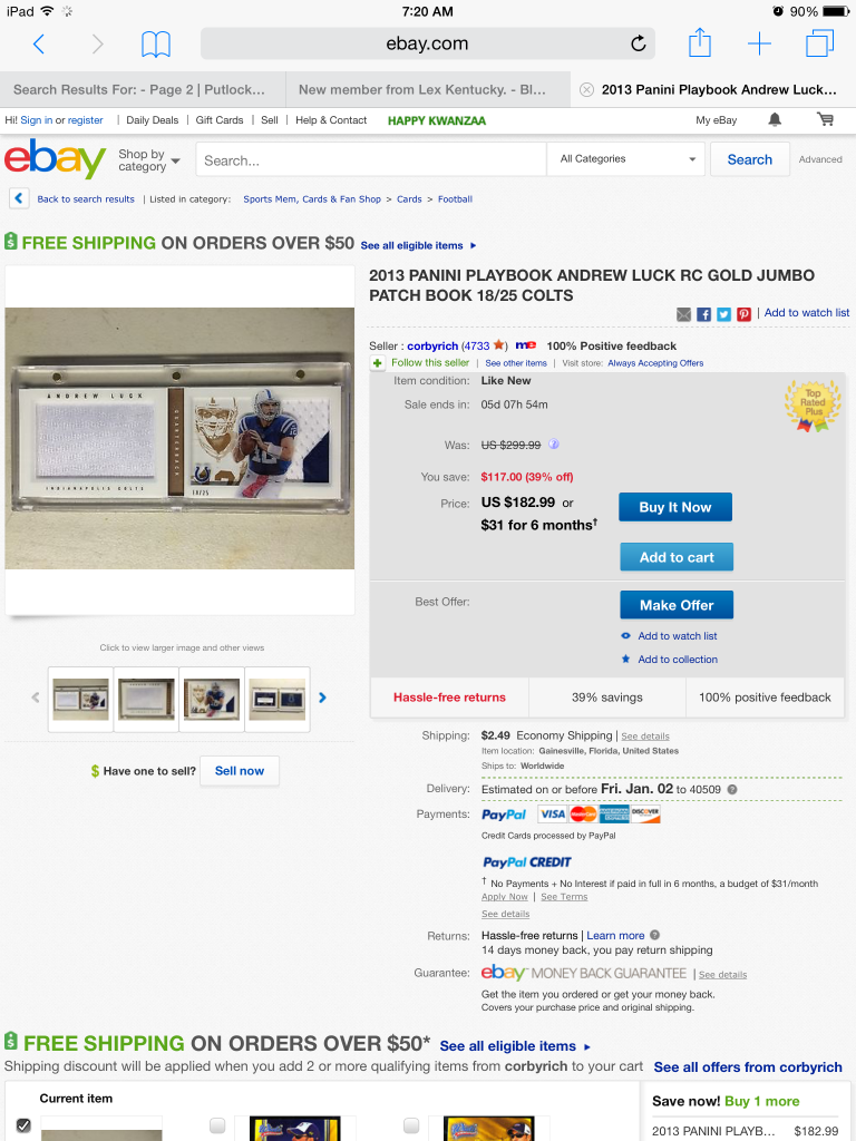 Yeah bud, you'll never sell anything on here if you go by ebay LISTING prices. You have to go by ebay SOLD prices. Just a tip. Nice card though and good luck with your sales.http://www.ebay.com/itm/Andrew-luck-...item19f80602f8 It looks like you sold this item twice already!http://www.ebay.com/itm/Andrew-luck-...item19f7828a60