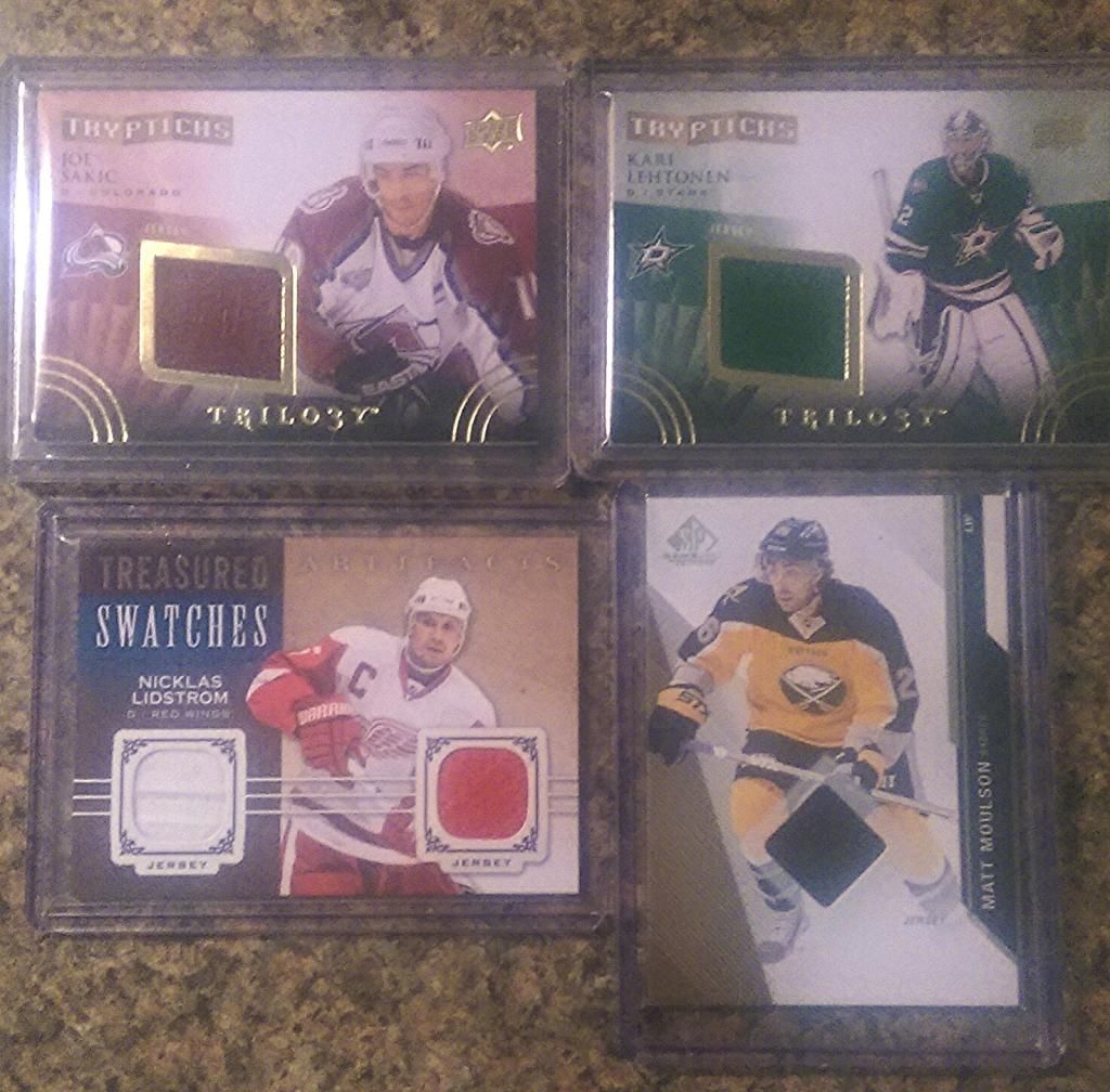 Kari Lehtonen Trilogy.Tryptichs /400 Nicklaus Lidstrom Artifacts Dual Swatch Matt Moulson SP Gameused sold