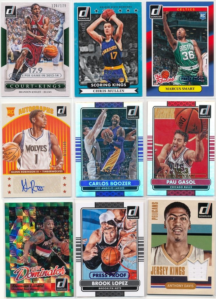 Kobe Packs all base and these (2 insert dupes not shown) ![]() ![]() ![]() ![]() 12/13 Panini Absolute (Granger already redeemed) ![]() 14/15 Panini Donruss (Too much to show all, here are only the numbered, GU and autographed) ![]()