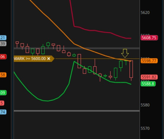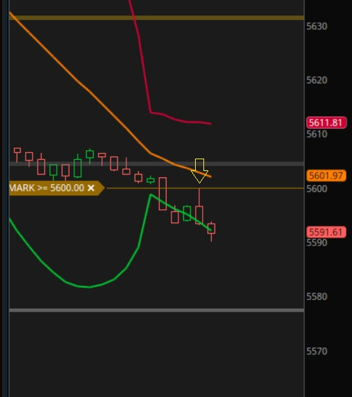 That stopped me out too. Pretty sure that was the volume bar that was looking like strong green up until 5630 area then went back and closed red.