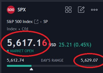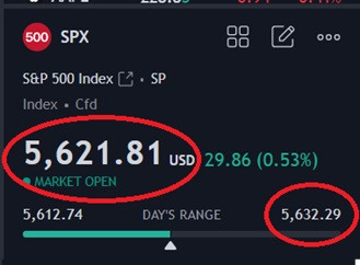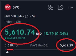 SPX: 5600 key level / 5650 top / 5550 bottom