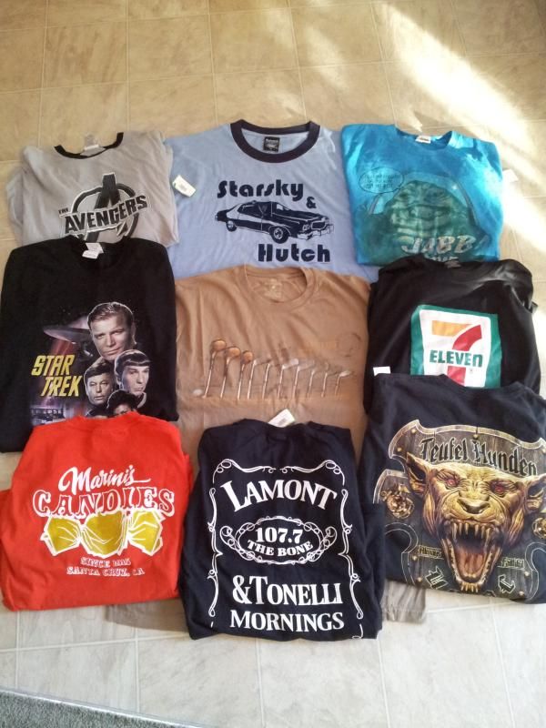 The group of goodwills in my area put out a calendar, with certain items being on sale certain days. Today was dollar t shirt day. Im off work today, and so is my wife. So she watched the little one, and after i dropped off the older to school, i started my adventure. Now im home, with 110 shirts to start processing! And i have really tamed my buying recently, by really looking over the shirts in the store before purchasing. I put back around twenty shirts today due to holes, stains, odd sized after washing, etc. Add these to my already listed items, and after i get these listed, ill be at 770 items. Made a few sales recently when i put my store on sale, so adding some fresh inventory should produce more results. |