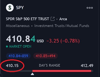 ----- Downside to having to do my real job. Missed us hitting 410... Not much time before Fed now though.