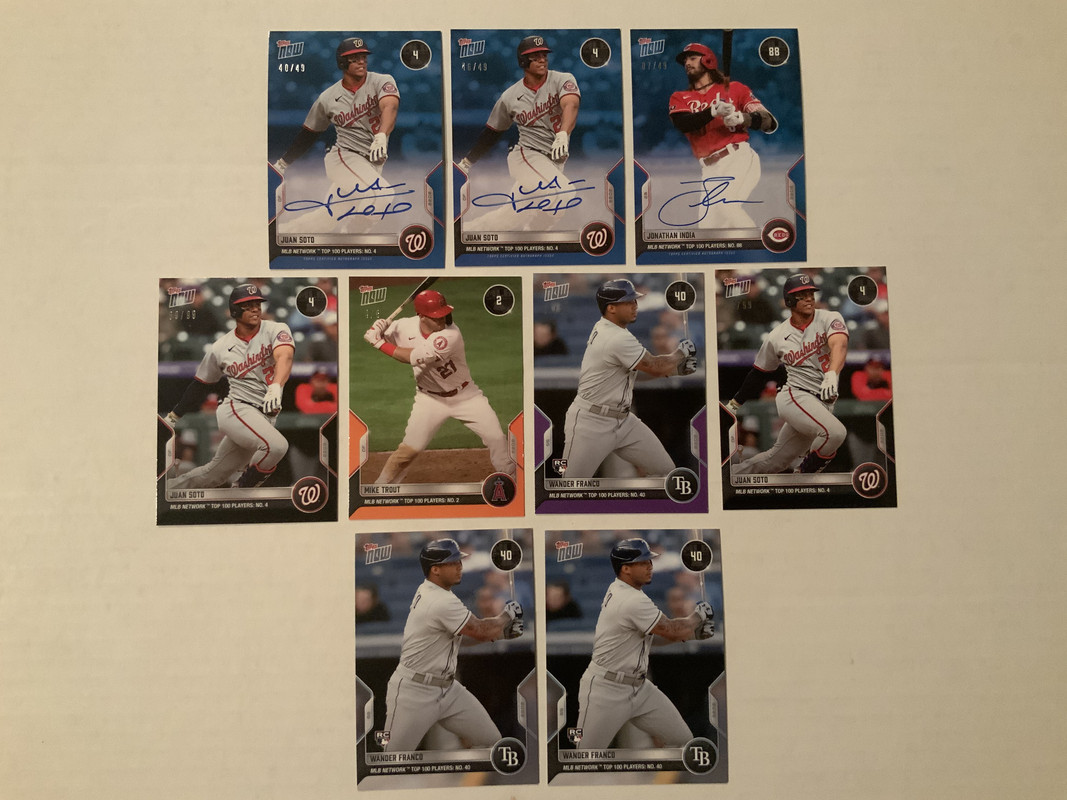 Soto, trout, Ohtani, bichette, acuna /99 Ohtani /49 Judge, Acuna /25 Autos India 30/99 India 13/49 India 34/49 Goldschmidt 09/25 Soto 08/25 Soto 08/10 ! Used a bunch of Topps $40 off codes to get 2 boxes for $10.53 each. Definitely worth it Last edited by akabruno; 09-28-2022 at 10:01 PM. |