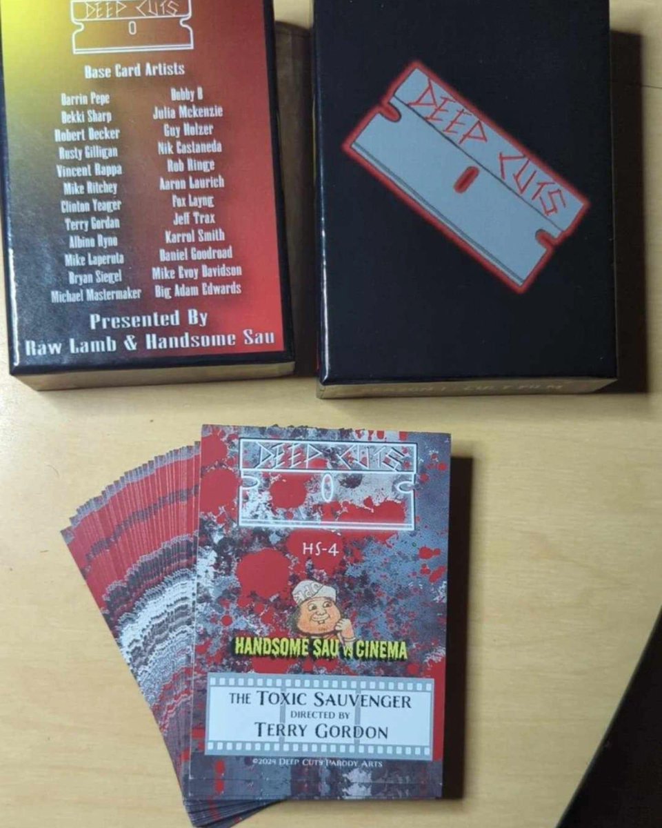 Note: sketch cards 1:384 packs (and have 2022 indicia); at 12 packs per box, that's one in 32 boxes. And here's a weird one ... something called DEEP CUTS is being pushed as a small-press set. I assume it focusses on Horror Movies (and Toxic Avenger?) |