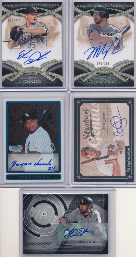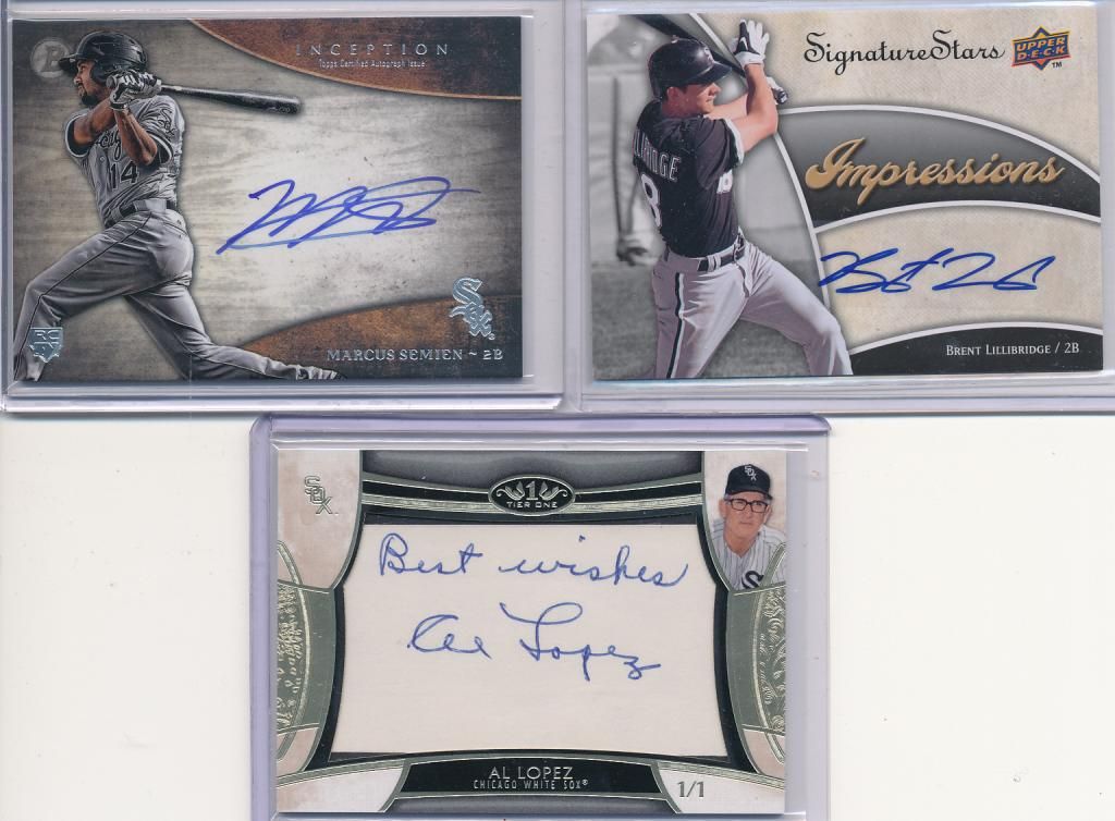 2014 Topps Tribute Chris Sale auto /99 (on card) 2012 Topps Triple Threads Chris Sale auto relic /99 (sticker) Let me know if you have any use for these.