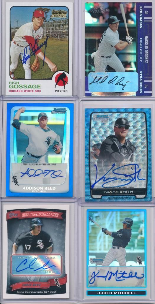 ![]() Goose Gossage played for the White Sox from 1972 to 1976. He was an All Star in 1975 and 1976 and he is one of the best relief pitchers ever. He had 26 saves in 1975. Magglio Ordonez played for the White Sox from 1997 to 2004. He was a 4X All Star with the Sox (1999–2001, 2003), and was a 2X Silver Slugger Winner (2000, 2002). Addison Reed played for the White Sox from 2011 to 2013. He had 40 saves last season. He now plays for the Diamondbacks. Kevan Smith is a catcher in the Sox farm system. He's hitting .300 with 9 homers in AA. Chris Getz played for the Sox from 2008 to 2009. In 2009, he was tied with 28 multi-hit games for a rookie. Jared Mitchell is an outfielder in AAA right now. He has 17 homers this year. ![]() Ryan Sweeney played for the Sox between 2006 and 2007. Chris Widger was the backup catcher for the Sox in 2005, when they won the World Series. Jerry Owens played for the Sox between 2006 and 2009. He had a lot of stolen bases and only 1 career homer. ![]() Josh Fields played for the Sox between 2006 and 2009. He had 23 homers as a rookie in 2007, and played first base in Mark Buehrle's no hitter. ![]() Pablo Ozuna played for the Sox between 2005 in 2008. He had his best season in '05, with 56 hits and 14 stolen bases. He was a good utility guy. Dustin Hermanson played for the Sox between 2005 and 2006. He had 34 saves and a 2.04 in 2005 before he got injured. ![]() Thanks for looking guys. I appreciate the comments.