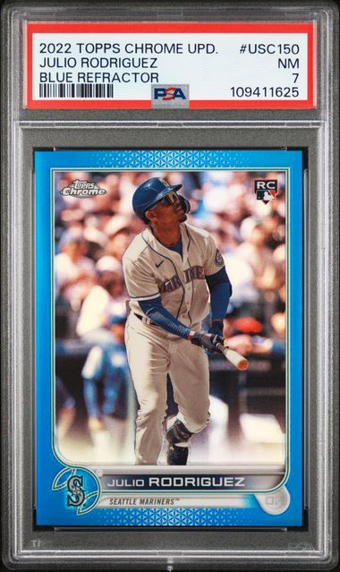 $139.50. I was out under $100. ![]() This card sold raw in Feb for $525. ![]() 2022 TOPPS CHROME UPDATE BLUE REFRACTOR JULIO RODRIGUEZ ROOKIE RC 130/199 PSA 7 https://www.psacard.com/cert/109411625 edit: the bid history link might not redirect to a new/different listing???? -- https://www.ebay.com/bfl/viewbids?item=297178506689