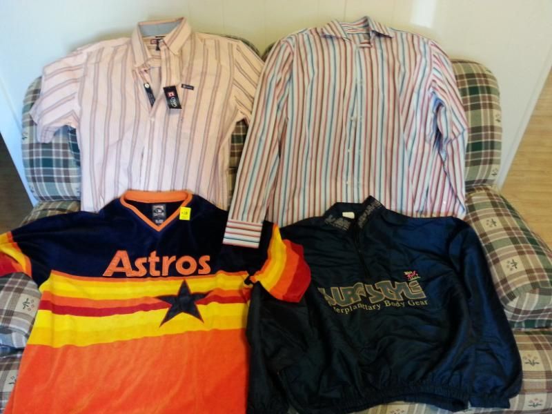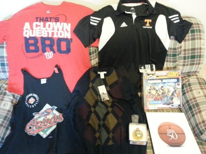 Not pictured are a Brady Games Walkthrough Guide for Diablo II and Metal gear Solid. At a quarter each, why not, ive had great success selling these guides in the past NBA at 50 hardcover Book - $1 Planet Hollywood Dallas etched shot glass -20c Vintage Notre Dame Ornament with the box - 49c Star Wars Kids Game Brand New - $2 Vintage Looks New 90s Orioles Tank T - 49c Bryce Harper Jersey look on back T, NWT Adidas Tennessee Shirt, NWT Cardigan Sweater -$2.50 each NWT chaps Shirt, and Classic Collection Astros Shirt - $2.50 each Surf Style Jacket (blue) and Banana Republic (may keep for myself) -$3.50 each ![]() ![]() thanks for the look |