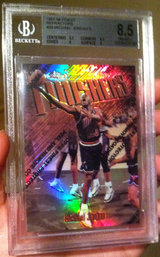 Nice MJ! Even with the little flaw that's still a sweet card. Those Rack Pack RC refractors sell for insane money. I really want the Stoudamire and there's one listed on ebay but it's listed with a $199.99 BIN. |