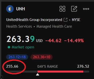 226 is the 200ma on monthly 234 was also a good area to bounce as that's been previous support back in 2019 when it was in that price range 257 was a previous recent support area as well, which it bounced there Best entry is at a key moving avg or close to it, in this case 200ma or 226 Starter position @ a support area (257 or 234) if you don't want to completely miss the trade, and add full position @ key ma or close to it (226) then hold your position long term 1+ years (unless more bad news comes out or you're satisfied with the gains and exit full position) I don't follow UNH so no idea how it moves or why it dropped other than the fraud headline, but even without following it the charts and technicals all work the same way that's why the range was and still is 226 - 257 ![]()
