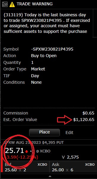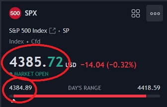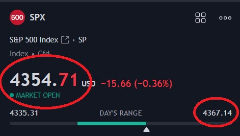----------------------------------------------------------------------------- Added @ 8:45 SPX gap filled. Waiting on 4400 SPX for calls test. Might bounce early, but no early entries. ----------------------------------------------------------------------------- Added @ 9:30 Not taking the 4400 bounce. This chop is why I said no early entries. Might wait for 4393-4390 and see what we do there. Last edited by Blazed; 08-22-2023 at 09:30 AM. |