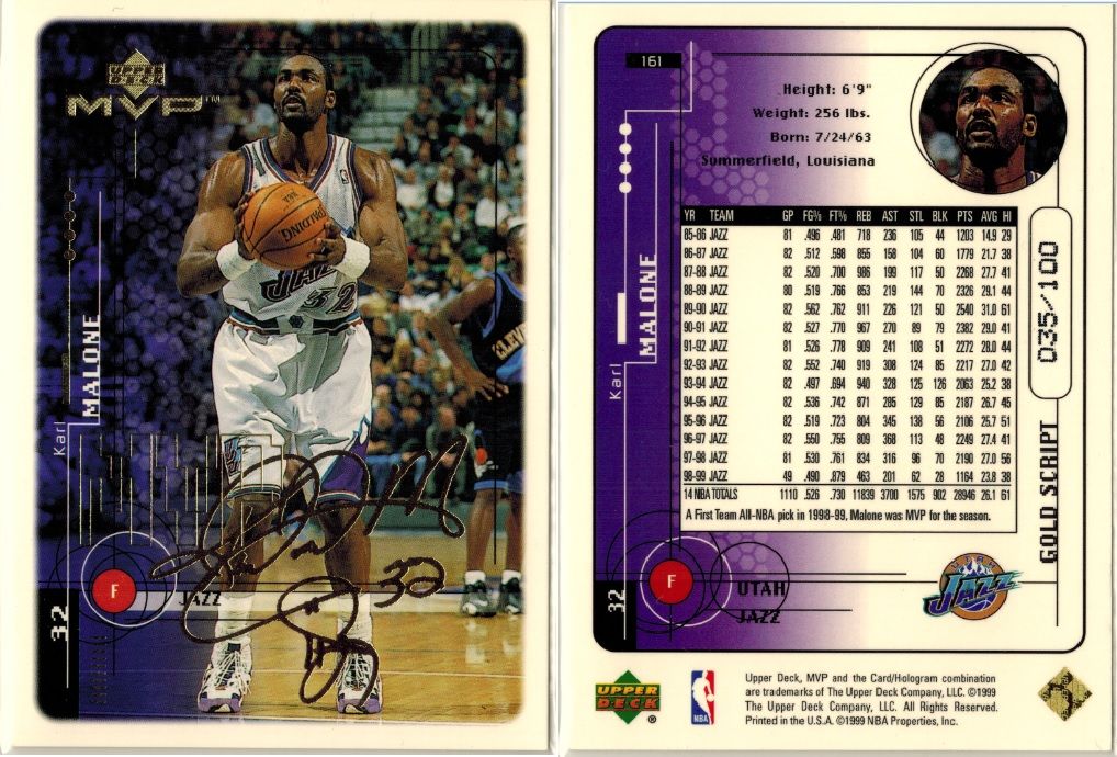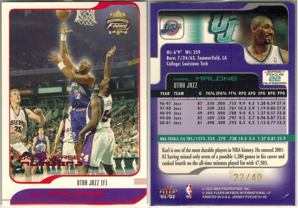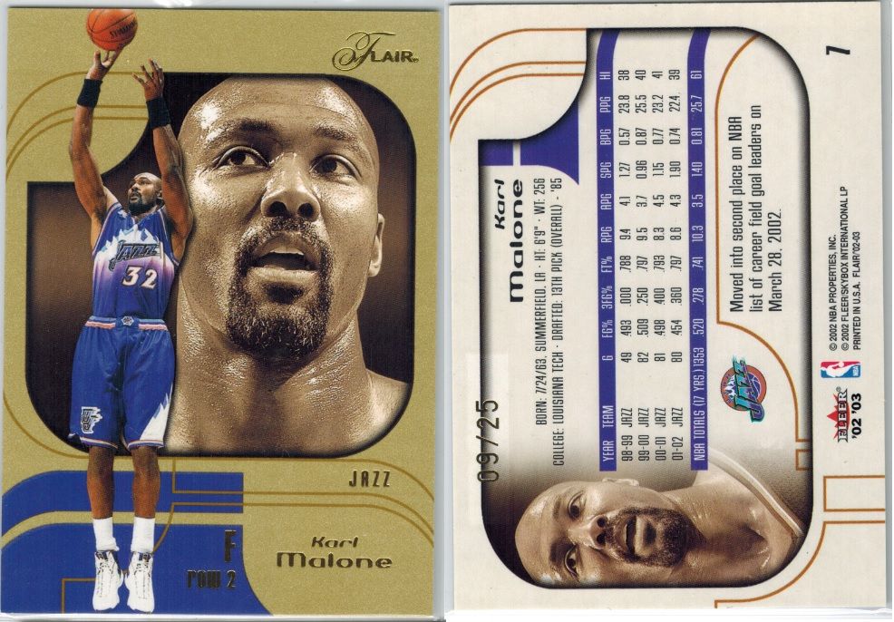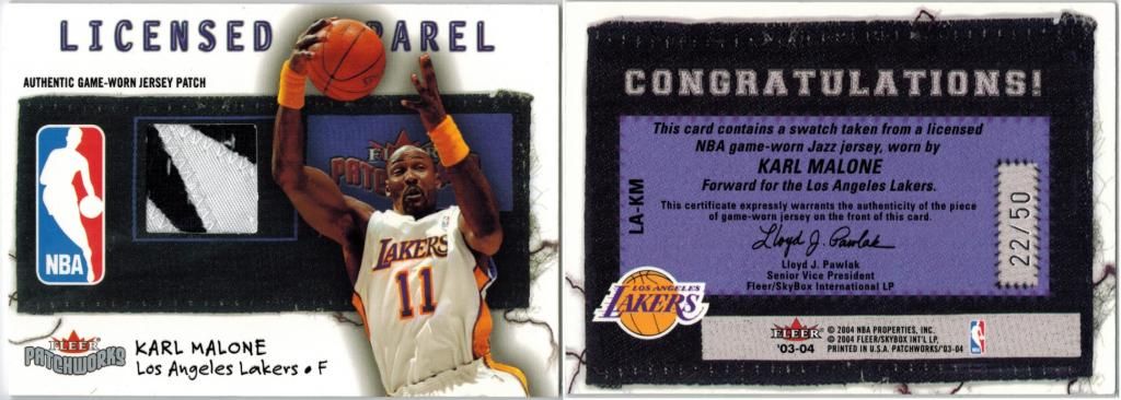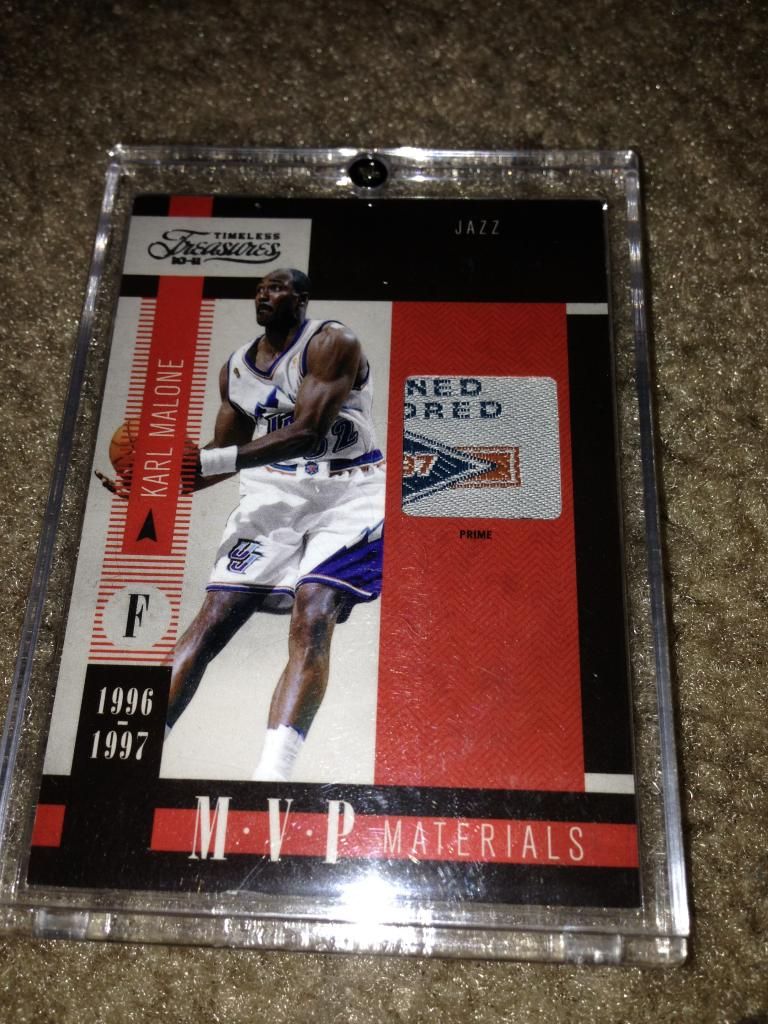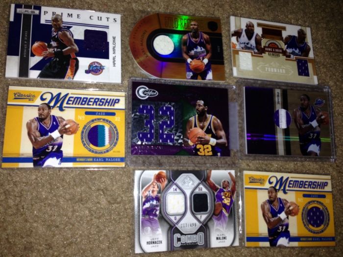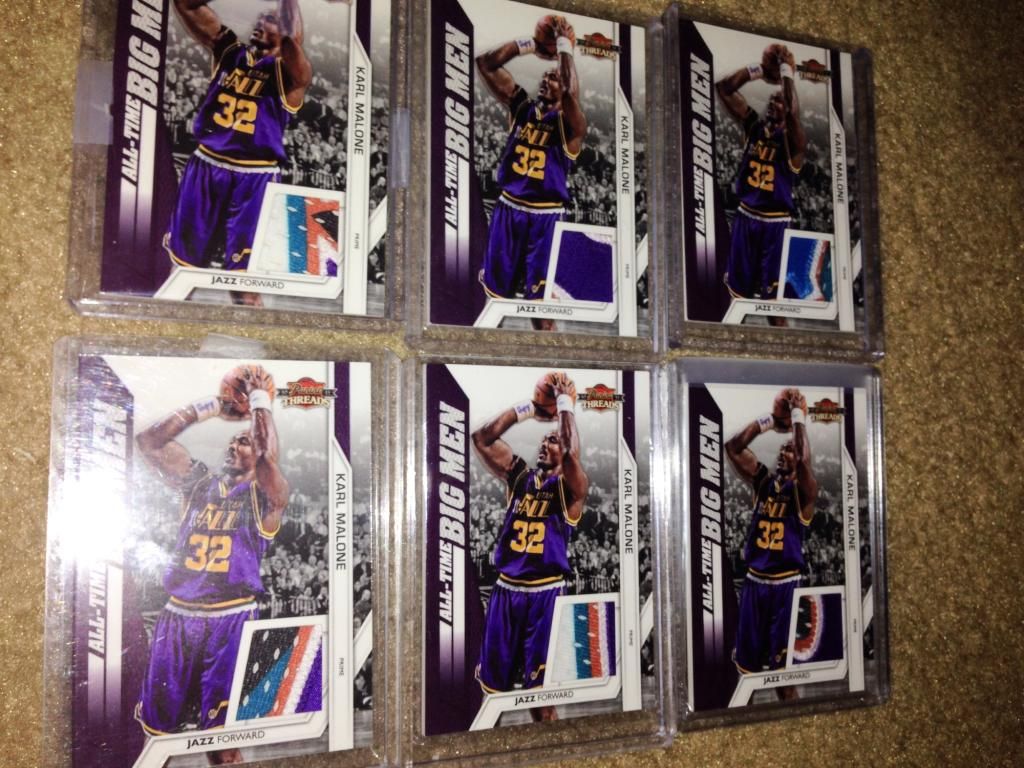 huge thanks to cardozo 1999-00 Black Diamond A Piece of History Triple #KM Karl Malone H ed#06/25 ![]() 1999-00 Topps Gold Label Class 1 Red Label #30 Karl Malone ed#023/100 ![]() 1999-00 Upper Deck MVP Gold Script #161 Karl Malone ed#035/100 ![]() 2002-03 SP Game Used Authentic Fabrics Triple #5 Karl Malone/John Stockton/Andrei Kirilenko ed#24/25 ![]() 2002-03 UD Authentics Rainbow #85 Karl Malone ed#21/50 ![]() 2003-04 Black Diamond Rainbow #143 Karl Malone ed#04/10 ![]() 2003-04 Upper Deck Finite #325 Karl Malone FC ed#03/50 ![]() 2003-04 Upper Deck Triple Dimensions Reflections Emerald #34 Karl Malone ed#068/100 ![]() 2003-04 Upper Deck Triple Dimensions Reflections Gold #34 Karl Malone ed#49/50 ![]() 2004-05 Bowman Chrome Refractors Gold #99 Karl Malone ed#12/50 ![]() 2004-05 Fleer Authentix Jerseys 10 #21 Karl Malone ed#02/10 ![]() 2004-05 Fleer Authentix Tip-Off Trios #LL Lamar Odom/Karl Malone/Luke Walton ed#47/75 ![]() 2004-05 SkyBox Premium Buybacks #190 Malone 02-3HoopStarRare/ 18 ![]() 2008-09 Topps T51 Murad Silk #154 Karl Malone ed#16/25 ![]() 2010-11 Timeless Treasures HOF Materials Quads #4 Clyde Drexler/ Hakeem Olajuwon/ John Stockton/ Karl Malone ed#04/10 ![]()