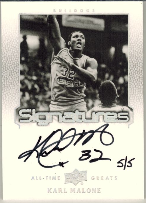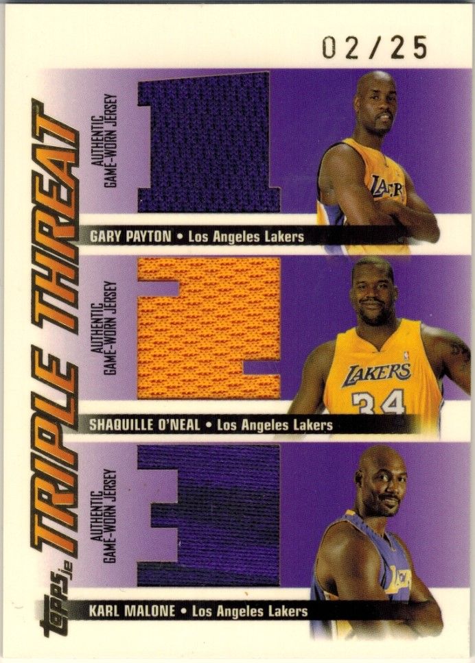 2000-01 SPx Spectrum #82 Karl Malone ed#/25 ![]() 2003-04 Topps Jersey Edition Triple Threat #15 Gary Payton/Shaquille O'Neal/Karl Malone ed#/25 ![]() 2013 Upper Deck All-Time Greats Signatures Silver #ATGKM3 Karl Malone ed#/5