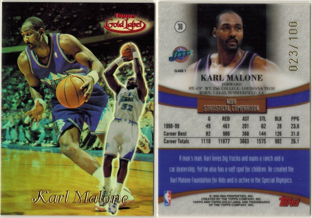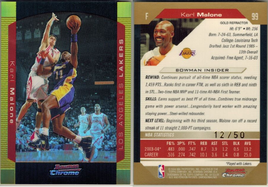 2008-09 Topps T51 Murad Silk #154 Karl Malone ed#/25 ![]() 2004-05 Bowman Chrome Refractors Gold #99 Karl Malone ed#/50