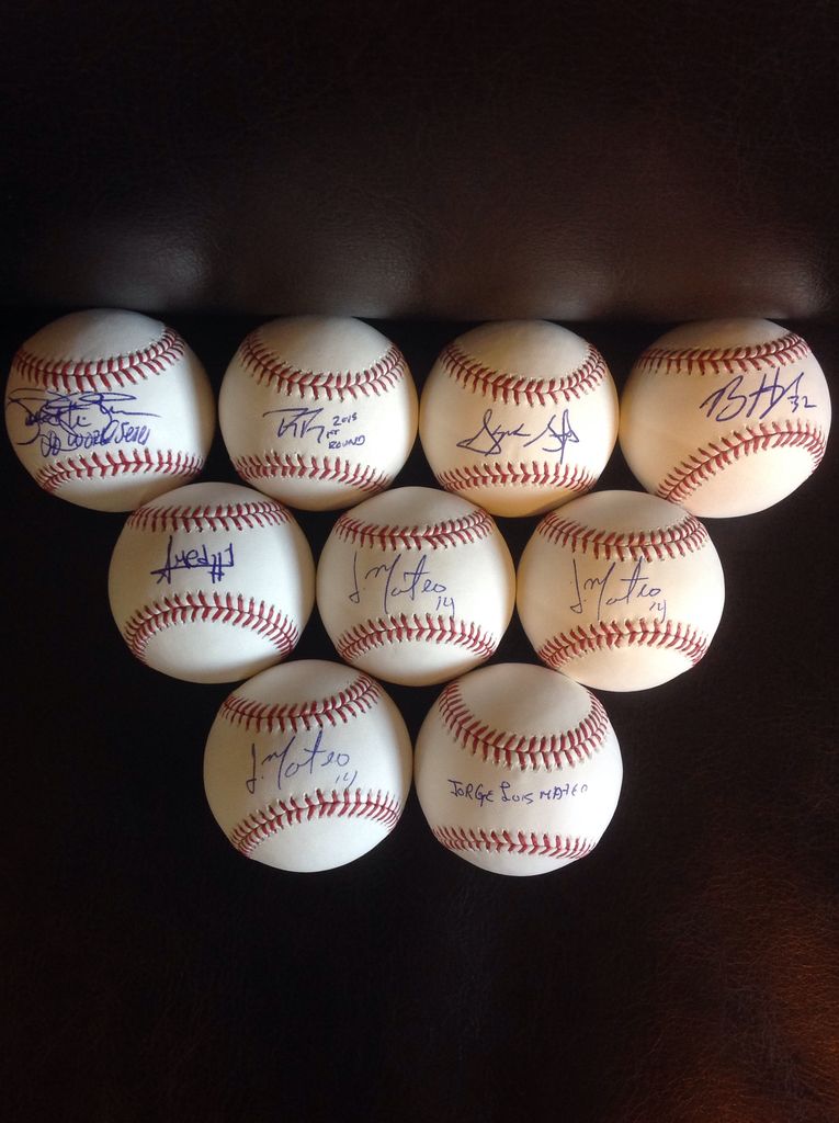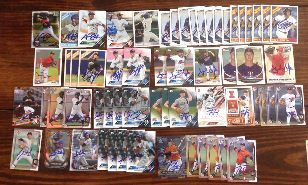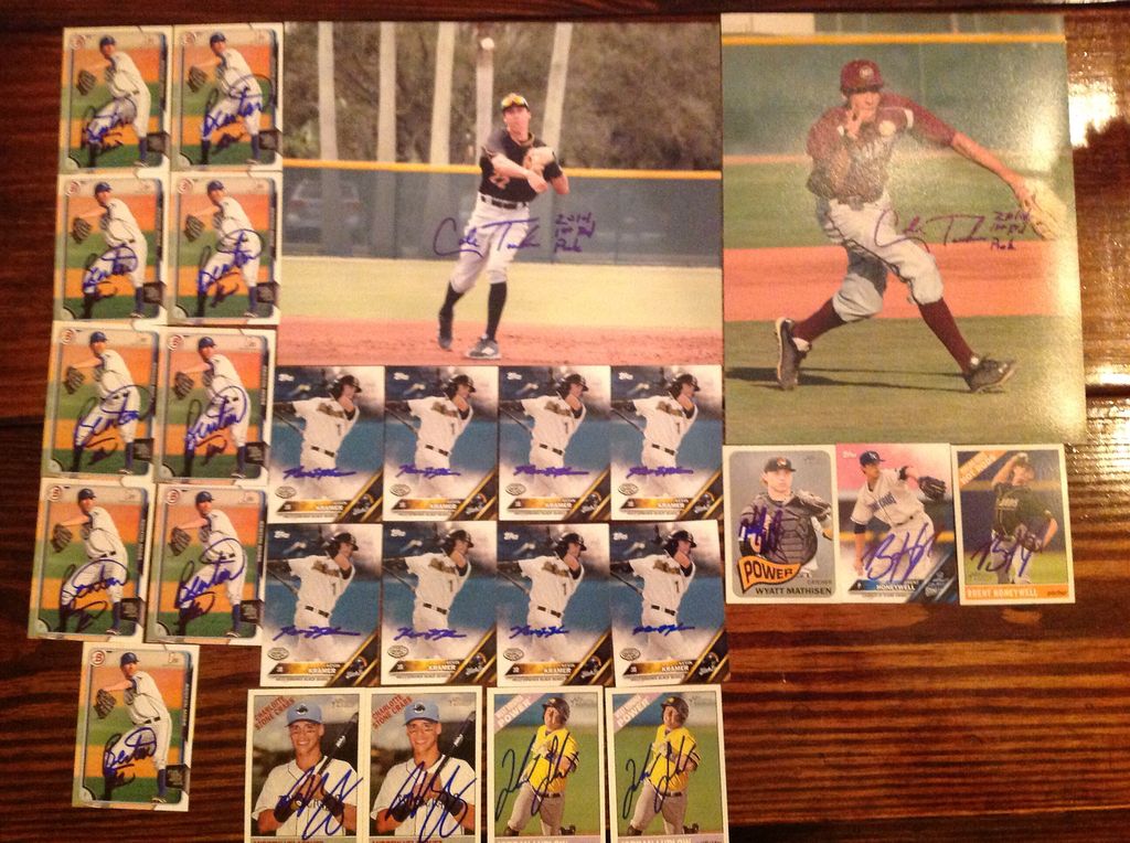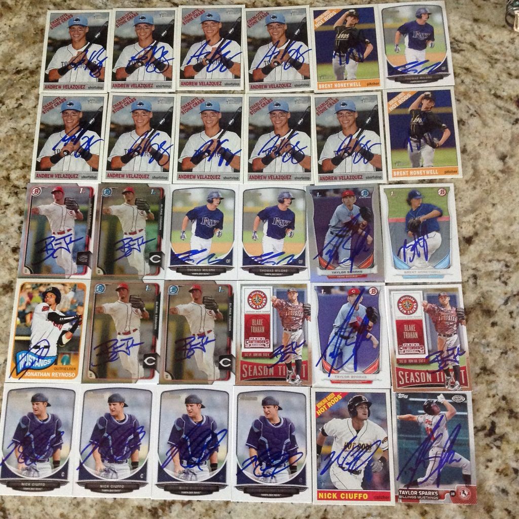 Finally hit a Gulf Coast League game. Most of the first rounders have moved onto Rookie League ball or higher. Fortunate enough to have Justin O'Connor rehabbing. Was kind enough to knock out all 9 for me. We talked about his injury of his back and the herniated disc. He wasn't sure what his future was for the rest of the season. He's pretty much done all he coukd do in the GCL. If anyone needs any, let me know. Just looking for 16 PDs in return.