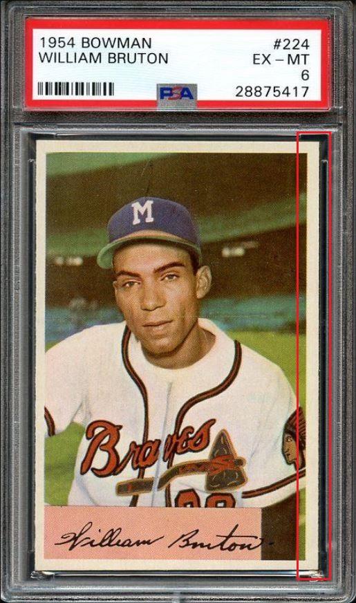 I would much rather have the PSA 6 Bruton than the PSA 7. It actually looks like the card got worse. The card molesters only care about the PSA label, nothing else.