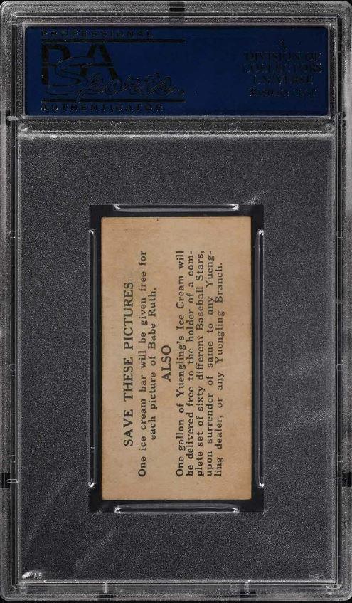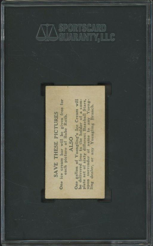 ![]() SGC Cert #6372180 1928 Yuengling's Ice Cream Lou Gehrig #26 Value gain of $2,289.00 This card was purchased by Gary Moser (whitman111) from Ebay seller PWCC as a PSA Authentic Altered on February 28, 2019 for $610.00. Same card was sold by Probstein123 as a SGC 2 for $2,899.00 on March 15, 2022. Yellow circles are print, chipping, stain or fiber identifiers. Heavy crease has been minimized. I used a scanned image from a prior sale for reference. With the PWCC scanned images being so different with contrast and brightness I am unable to see the pencil marks referred to by PWCC in the listing description. ![]() ![]() ![]() ![]() ![]()