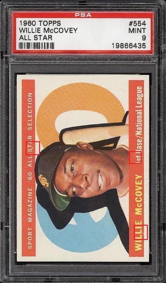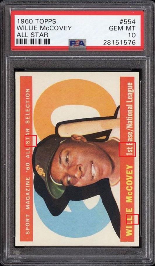 The shape and contour of all four corners appear to have changed on the PSA 10 1960 Topps Willie McCovey All Star.