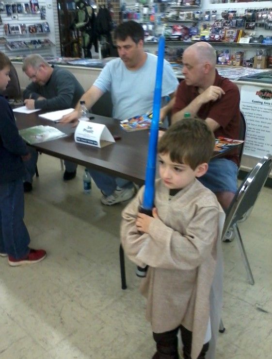 went & saw Joe Pruett & Mark Bagley (at table in pic) on Saturday for Free Comic Book Day ... the jedi is my 4yr.old ...