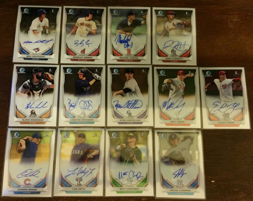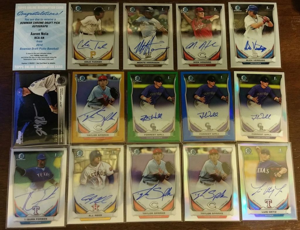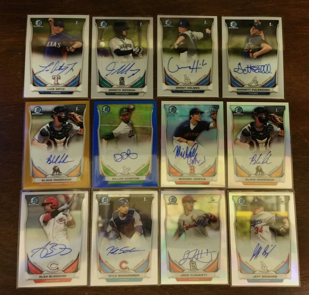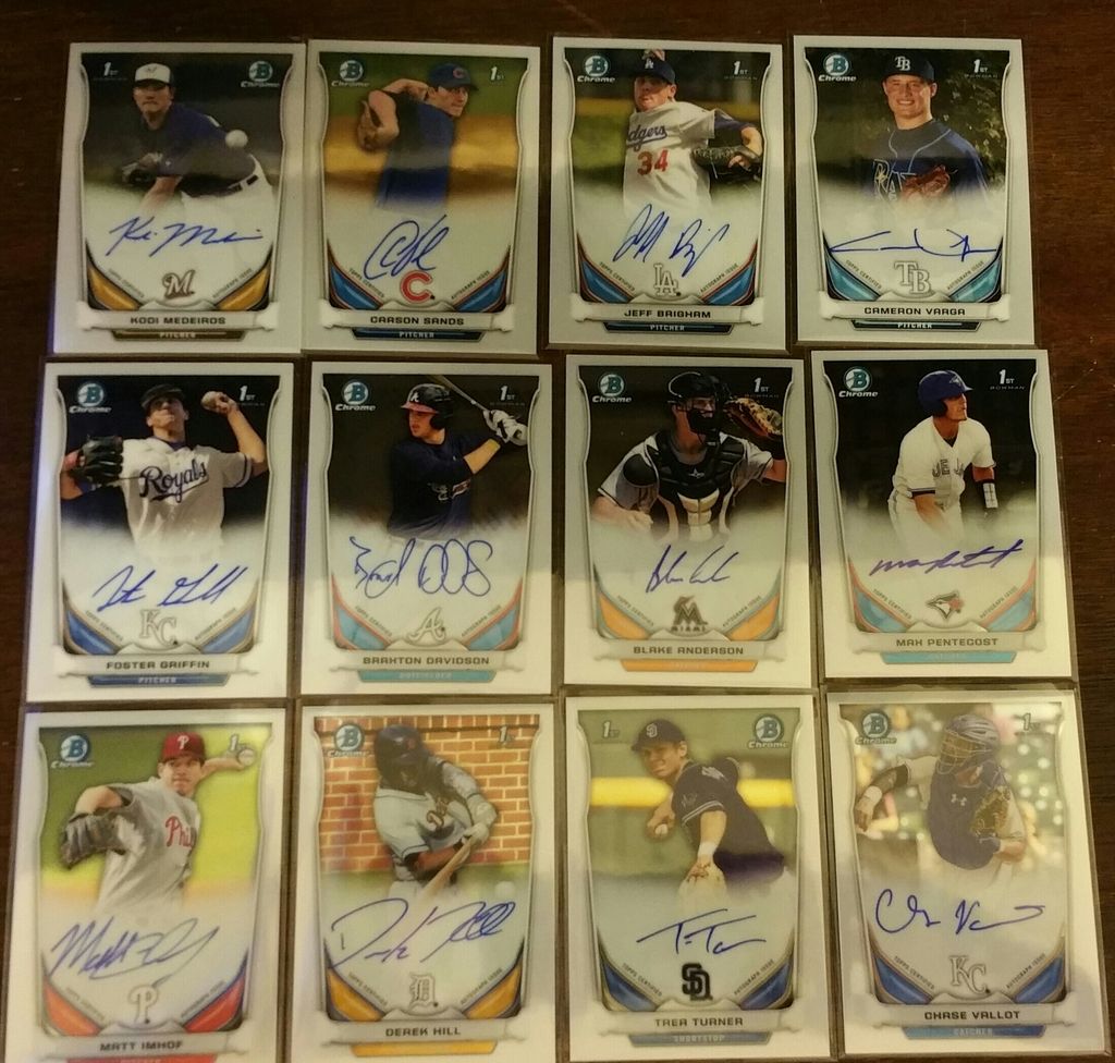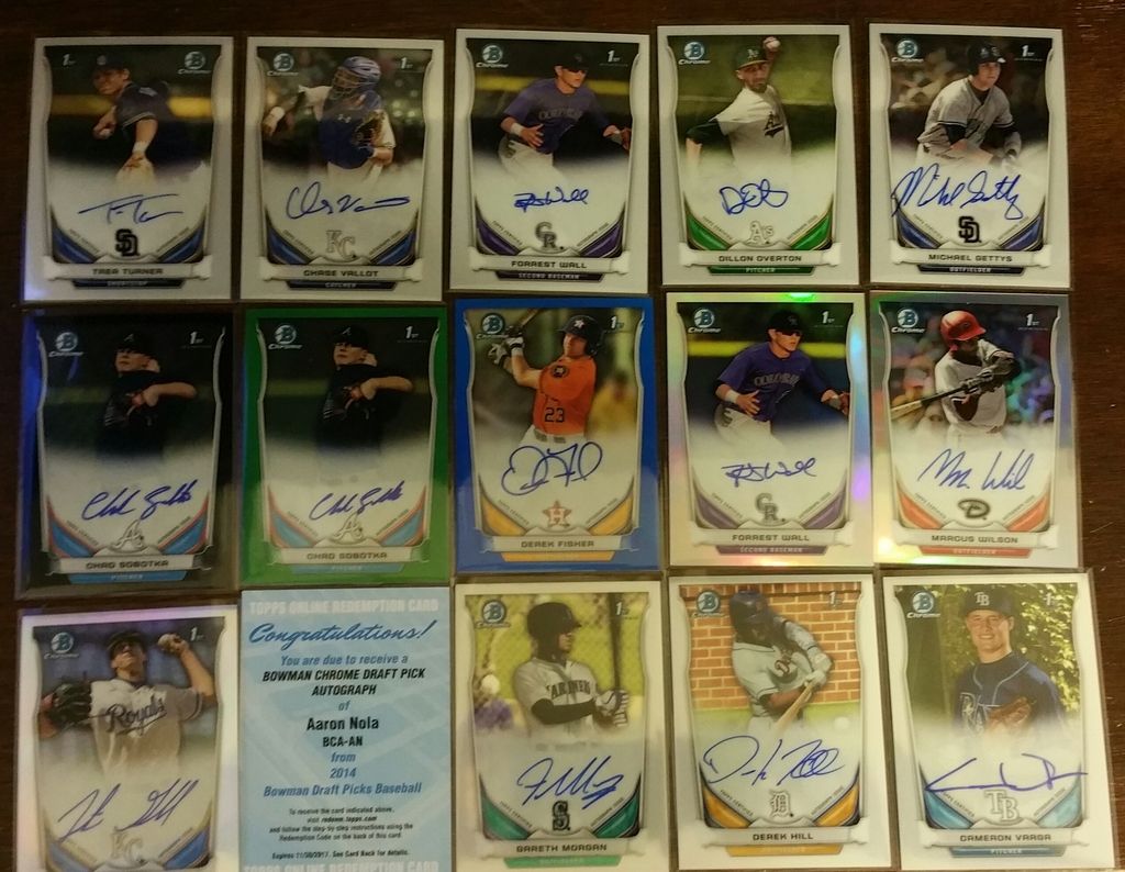 Bonus product has been allocated to its proper spots. 1. lisu - BCA-AJ Alex Jackson Auto AUTO 2. The Phinatic (bruins) - BCA-KS Kyle Schwarber Auto GOLD AUTO, 4 AUTO 3. ALBASKETBALL - BCA-NG Nick Gordon Auto 2 AUTO 4. kordell1 - CTP-Cubs (Jimenez, Almora, Bryant, Edwards) ALMORA BLUE WAVE, JIMINEZ BLUE, ALMORA BLUE, EDWARDS GREEN 5. wilsonsingles (coyotes01) - BCA-AN Aaron Nola Auto 3 AUTO, REF AUTO 6. The Phinatic - BCA-MG Michael Gettys Auto 2 AUTO 7. The Phinatic (sarahmc143, wilsonsingles) - BCA-AV Alex Verdugo Auto 5 AUTO 8. The Phinatic (Syndygaard) - BCA-BZ Bradley Zimmer Auto 3 AUTO 9. The Phinatic - BCA-MH Monte Harrison Auto 2 AUTO 10. The Phinatic (sarahmc143, horton) - BCA-JG Jacob Gatewood Auto AUTO 11. AK1982 (BMiller) - BCA-TT Trea Turner Auto 3 AUTO, GREEN AUTO 12. dthimesch - BCA-TK Tyler Kolek Auto 2 AUTO, BLUE AUTO 13. The Phinatic - (nordy22) - BCA-GH Grant Holmes Auto 5 AUTO 14. The Phinatic - BCA-BD Braxton Davidson Auto 4 AUTO 15. griffan15 (xxmudgexx) - BCA-MIC Michael Chavis Auto 3 AUTO, 3 REF AUTO 16. BMiller - BCA-FW Forrest Wall Auto 2 BLUE AUTO, 3 REF AUTO, AUTO, GREEN AUTO 17. Silvercamp - BCA-MP Max Pentecost Auto 4 AUTO 18. bulljh (kyle121592) - BCA-AR A.J. Reed Auto 2 AUTO 19. Jsturino - BCA-DH Derek Hill Auto BLUE AUTO, 3 AUTO 20. rcspur (coyotes01)- BCA-JH Jeff Hoffman Auto 2 REF AUTO, 2 AUTO 21. The Phinatic (AK1982) - CDP7 Michael Conforto New York Mets BLUE 22. Shanehw (dustyb1987) - BCA-TB Tyler Beede Auto 2 AUTO, REF AUTO 23. cardinalsfan - CDP3 Alex Jackson Seattle Mariners 24. The Phinatic (sarahmc143, ALBASKETBALL) - BCA-DF Derek Fisher Auto 2 AUTO, REF AUTO, BLACK WAVE AUTO, BLUE AUTO 25. fduran27 (griffan15) - BCA-KF Kyle Freeland Auto - Autopick 2 AUTO 26. xxmudgexx (griffan15) - BCA-CT Cole Tucker Auto 4 AUTO 27. cardinalsfan (zstratton2) - CDP2 Kyle Schwarber Chicago Cubs RED WAVE 28. dthimesch (NickM) - BCA-SA Spencer Adams Auto 2 AUTO 29. dthimesch (dubooze) - BCA-MK Michael Kopech Auto REF AUTO, 2 AUTO, BLUE AUTO 30. Rooftop - BCA-MCH Matt Chapman Auto 4 AUTO 31. nordy22 - BCA-KM Kodi Medeiros Auto 4 AUTO 32. billy macey - BCA-JL Jacob Lindgren Auto 4 AUTO, GREEN AUTO 33. ALBASKETBALL - BCA-EF Erick Fedde Auto 4 AUTO 34. The Phinatic (rcspur) - BCA-LO Luis Ortiz Auto 5 AUTO, 2 REF AUTO 35. 13CardinalsFan (griffan15) - BCA-JF Jack Flaherty Auto 4 AUTO, 2 REF AUTO 36. nordy22 - CA-FG Foster Griffin Auto 3 AUTO, REF AUTO 37. Rooftop - BCA-SN Sean Newcomb Auto AUTO, REF AUTO 38. billy macey - CTP-Yankees (Severino, Judge, Jagielo, Torrens, Clarkin, Williams, Katoh) TORRENS BLUE, JAGIELO GOLD, JUDGE BLACK WAVE, CLARKIN BLUE WAVE, KATOH BLUE WAVE 39. BNB (cardinalsfan) - BCA-CS Carson Sands Auto REF AUTO, 5 AUTO 40. The Phinatic (rcspur, coyotes01) - BCA-MW Marcus Wilson Auto AUTO, BLUE AUTO, REF AUTO 41. columbusbuckeye (Jsturino, xxmudgexx, griffan15) - BCA-MPA Mike Papi Auto 4 AUTO, REF AUTO 42. NeedChapmans - #@62. CTP-Pirates-1 (Taillon, Meadows, Bell, McGuire, Hanson, Jones, Glasnow) MEADOWS BLACK WAVE, JONES GOLD, BELL BLUE, JONES BLUE, JONES RED WAVE, HANSON BLUE 43. The Phinatic - BCA-JS Justus Sheffield Auto 3 AUTO, REF AUTO 44. BMiller - BCA-AB Alex Blandino Auto 5 AUTO 45. The Phinatic - CTP-Red Sox (Ball, Devers, Coyle, Swihart) BALL BLUE, SWIHART BLUE, BALL BLUE WAVE, COYLE BLUE, BALL GREEN 46. Stewfan14 (xxmudgexx, Jsturino, coyotes01) - BCA-DC Dylan Cease Auto 3 AUTO 47. steveO (griffan15) - BCA-CV Chase Vallot Auto 3 AUTO, GREEN AUTO, 2 REF AUTO 48. Shanehw (cardinalsfan, coyotes01) - BCA-RR Ryan Ripken Auto 49. BMiller - 50. BCA-NH Nick Howard Auto REF AUTO, 2 AUTO 50. cardinalsfan (coyotes01) - BCA-GM Gareth Morgan Auto REF AUTO, 3 AUTO 51. cardinalsfan (coyotes01) - BCA-LW Luke Weaver Auto 2 AUTO, REF AUTO 52. Alanleigha - BCA-GF Garrett Fulenchek Auto REF AUTO, 5 AUTO, ORANGE AUTO 53. The Phinatic - CDP49 Michael Gettys San Diego Padres 54. HunterCaleb (nordy2, cardinalsfan, coyotes01) - BCA-TF Ti'Quan Forbes Auto 3 AUTO 55. bruins (DodgyTrousers) - BCA-JR Jakson Reetz Auto 2 AUTO 56. billy macey - BCA-TS Taylor Sparks Auto 3 AUTO, REF AUTO, GOLD AUTO 57. Zeis091 (horton) - Paper and Ice Parallels Case 9 9 BLUE PAPER (incl. CONFORTO), 4 RED ICE, 2 PURPLE ICE (incl. HARRISON), CHAPMAN ORANGE ICE 58. steveO (NeedChapmans) - BCA-CJ Connor Joe Auto AUTO 59. The Phinatic (sarahmc143) - CDP126 Nick Gordon Minnesota Twins 60. Nypinstripes - #@BCA-BGO Brian Gonzalez Auto 2 AUTO, BLUE AUTO 61. Stewfan14 (Syndygaard) - #@BCA-JST Jake Stinnett Auto 3 AUTO, REF AUTO 62. The Phinatic (AK1982) - BCA-NB Nick Burdi Auto#@ 2 AUTO 63. lisu - 61. BCA-AG Aramis Garcia Auto AUTO 64. benny7221 - BCA-MI Matt Imhof Auto 4 AUTO 65. fenwaykid (coyotes01, Jsturino) - CTP-Dodgers (Urias, Seager) 2 URIAS GREEN 66. The Phinatic (rcspur) - CDP59 Alex Verdugo Los Angeles Dodgers BLUE 67. Btheis03 (zeus091, coyotes01) - Paper and Ice Parallels Case 7 10 BLUE PAPER (incl. HARRISON), 3 RED ICE, PURPLE ICE, ORANGE ICE, AJ REED RED PAPER /5 68. zeus091 (coyotes01) - Paper and Ice Parallels Case 3 10 BLUE PAPER, 4 RED ICE, 3 PURPLE ICE, ORANGE ICE 69. Jla1976 (BMiller) - BCA-SRF Sean Reid-Foley Auto AUTOPICK REF AUTO, 2 AUTO 70. billy macey - BCA-TSU Trey Supak Auto 2 AUTO 71. rcspur (yrosenberg) - Paper and Ice Parallels Case 1 10 BLUE PAPER (incl. GORDON & BRYANT), 3 RED ICE, 4 PURPLE ICE (incl. Nola) 72. rcspur (yrosenberg, bruins) - Paper and Ice Parallels Case 2 9 BLUE PAPER, 4 RED ICE, 2 PURPLE ICE, HILL ORANGE ICE 73. Btheis03 (zeus091, dubooze, dthimesch) - Paper and Ice Parallels Case 5 13 BLUE PAPER, 3 RED ICE, 3 PURPLE ICE, URIAS ORANGE ICE 74. Zeus091 (Dman05888) - Paper and Ice Parallels Case 8 10 BLUE PAPER, 4 RED ICE, 3 PURPLE ICE, ORANGE ICE 75. Burrguana - CDP39 Jacob Gatewood Milwaukee Brewers 76. zeus091 (nordy22) - Paper and Ice Parallels Case 4 9 BLUE PAPER, 3 RED ICE, 4 PURPLE ICE, ORANGE ICE 77. Btheis03 (zeus091, Nordy22, HunterCaleb) - Paper and Ice Parallels Case 6 9 BLUE PAPER, 3 RED ICE, 2 PURPLE ICE, ORANGE ICE 78. Syndygaard (nord