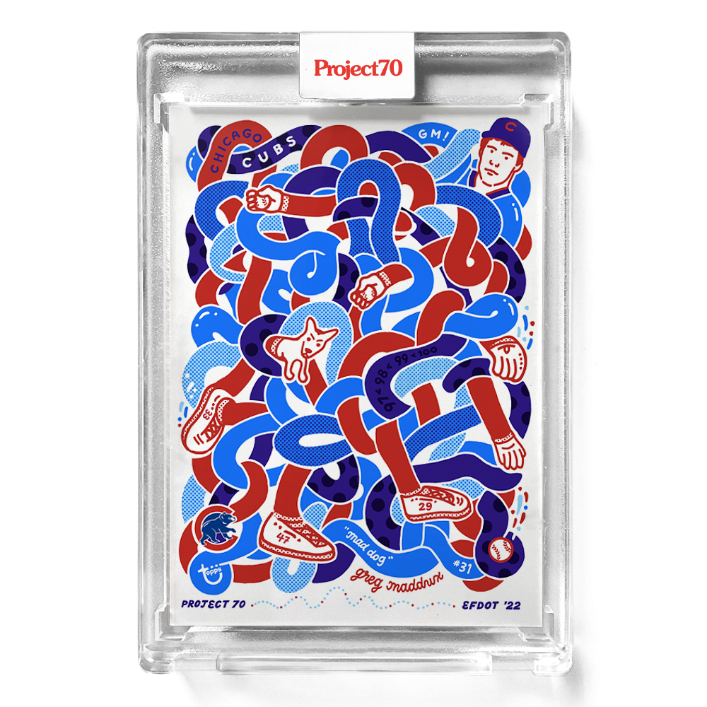 Blue the Great's card feels like a Topps Kids insert. Thiele's Maddux is one of his better player faces, but unfortunately was during his phase where every background is a dark, smoky hellscape. Thiele's brighter cards worked better for me. |