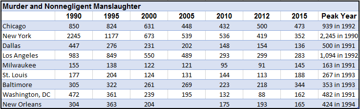 "To take a longer view of murders in major cities, we compiled the FBI city-specific data, which are available through 2012, and more recent 2015 numbers reported by police departments to the Major Cities Chiefs Police Association for the cities Obama and Trump mentioned, as well as others highlighted in the Times reports. Every city shows a “huge drop,” as Obama said, from the early 1990s, and mixed movement from 2012 to 2015." - (factcheck.org) [IMG] [/IMG]