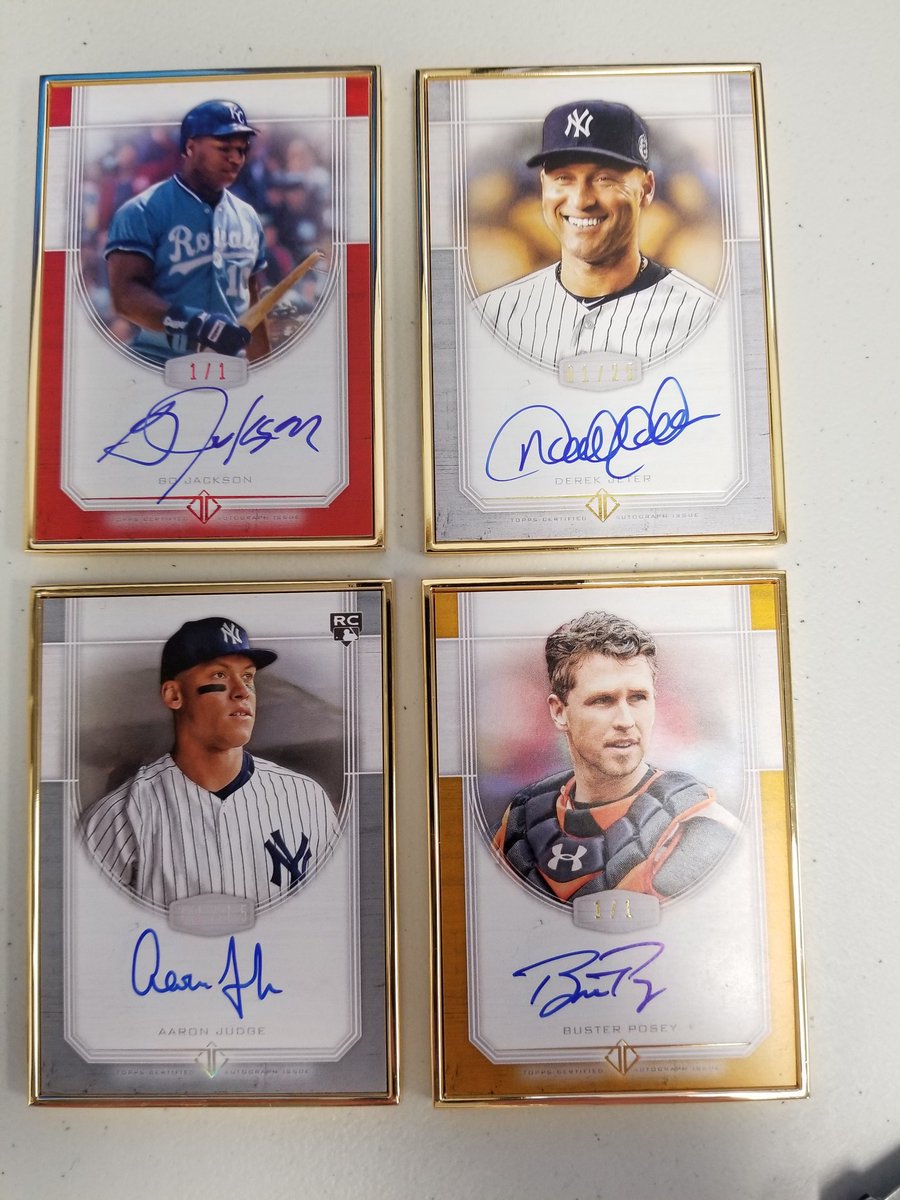 Wilt Chamberlain cut auto 1/1 (extra shipping) MLBM-CRI Cal Ripken Jr sketch 1/1 MVPA-JBA Jeff Bagwell MVP auto 1/1 TCA-AB Adrian Beltre 01/10 TCA-AB Adrian Beltre 08/25 TCA-ABE Andrew Benintendi 19/25 TCA-ABR Alex Bregman 14/15 TCA-ABR Alex Bregman 02/15 TCA-AJ Aaron Judge 12/15 TCA-ARI Anthony Rizzo 24/25 TCA-BH Bryce Harper 13/15 TCA-BJ Bo Jackson 1/1 TCA-BJ Bo Jackson 07/10 TCA-BL Barry Larkin 03/15 TCA-BP Buster Posey 1/1 TCA-BP Buster Posey 07/10 TCA-CC Carlos Correa 09/10 TCA-CJ Chipper Jones 05/15 TCA-CK Clayton Kershaw 04/10 TCA-CR Cal Ripken Jr. 16/25 TCA-DJ Derek Jeter 01/25 TCA-DM Don Mattingly 02/10 TCA-DM Don Mattingly 14/25 TCA-DO David Ortiz 02/25 TCA-DW Dave Winfield 22/25 TCA-FL Francisco Lindor 24/25 TCA-FL Francisco Lindor 06/25 TCA-FMJ Floyd Mayweather Jr. 02/25 TCA-GM Greg Maddux 04/15 TCA-HA Hank Aaron 23/25 TCA-HA Hank Aaron 18/25 TCA-HM Hideki Matsui 05/15 TCA-I Ichiro 03/25 TCA-JB Johnny Bench 05/25 TCA-JD Josh Donaldson 04/10 TCA-JT Jim Thome 06/10 TCA-KB Kris Bryant 11/15 TCA-MM Manny Machado 08/15 TCA-MMC Mark McGwire 13/25 TCA-MP Mike Piazza 04/25 TCA-MR Mariano Rivera 07/15 TCA-MT Mike Trout 09/15 TCA-NR Nolan Ryan 15/25 TCA-NS Noah Syndergaard 03/10 TCA-PM Pedro Martinez 13/25 TCA-RC Roger Clemens 15/15 TCA-RCA Rod Carew 20/25 TCA-RH Rickey Henderson 25/25 TCA-RJ Randy Johnson 22/25 TCA-RJA Reggie Jackson 15/25 TCA-SK Sandy Koufax 11/25 TCA-TE Theo Epstein 07/15 TCA-YM Yoan Moncada 03/10 TCA-CBE Cody Bellinger image variation purple redemption /10 TCA-IH Ian Happ Image variation auto redemption /25 TCA-TS Tom Seaver image silver redemption /15 1 Jackie Robinson, Brooklyn Dodgers 65/87 2 Aaron Judge, New York Yankees RC 65/87 3 Roberto Clemente, Pittsburgh Pirates 65/87 4 Bryce Harper, Washington Nationals 65/87 5 Randy Johnson, Montréal Expos 65/87 6 Alex Bregman, Houston Astros RC 65/87 7 Kris Bryant, Chicago Cubs 65/87 8 Francisco Lindor, Cleveland Indians 65/87 9 Bo Jackson, Kansas City Royals 65/87 10 Greg Maddux, Atlanta Braves 65/87 11 Ted Williams, Boston Red Sox 65/87 12 Rickey Henderson, Oakland Athletics 65/87 13 Reggie Jackson, Oakland Athletics 65/87 14 Roger Maris, New York Yankees 65/87 15 Honus Wagner, Pittsburgh Pirates 65/87 16 Roger Clemens, Boston Red Sox 65/87 17 Ernie Banks, Chicago Cubs 65/87 18 Miguel Cabrera, Detroit Tigers 65/87 19 Chris Sale, Boston Red Sox 65/87 20 Yoan Moncada, Chicago White Sox RC 65/87 21 Andrew Benintendi, Boston Red Sox RC 65/87 22 Manny Machado, Baltimore Orioles 65/87 23 Carl Yastrzemski, Boston Red Sox 65/87 24 Clayton Kershaw, Los Angeles Dodgers 65/87 25 Babe Ruth, New York Yankees 65/87 26 Nolan Ryan, Texas Rangers 65/87 27 Carlos Correa, Houston Astros 65/87 28 Dave Winfield, New York Yankees 65/87 29 Anthony Rizzo, Chicago Cubs 65/87 30 Albert Pujols, Los Angeles Angels 65/87 31 Mike Piazza, New York Mets 65/87 32 Hank Aaron, Milwaukee Braves 65/87 33 George Brett, Kansas City Royals 65/87 34 Pedro Martinez, Boston Red Sox 65/87 35 Jimmie Foxx, Philadelphia Athletics 65/87 36 Cal Ripken Jr., Baltimore Orioles 65/87 37 Chipper Jones, Atlanta Braves 65/87 38 David Ortiz, Boston Red Sox 65/87 39 Ichiro, Miami Marlins 65/87 40 Lou Gehrig, New York Yankees 65/87 41 Ken Griffey Jr., Seattle Mariners 65/87 42 Hideki Matsui, New York Yankees 65/87 43 Sandy Koufax, Los Angeles Dodgers 65/87 44 Ty Cobb, Detroit Tigers 65/87 45 Mike Trout, Los Angeles Angels 65/87 46 Cody Bellinger, Los Angeles Dodgers RC 65/87 47 Corey Seager, Los Angeles Dodgers 65/87 48 Max Scherzer, Washington Nationals 65/87 49 Buster Posey, San Francisco Giants 65/87 50 Derek Jeter, New York Yankees 65/87 MLBMR-AR Alex Rodriguez 65/87 MLBMR-ARO Alex Rodriguez 65/87 MLBMR-BH Bryce Harper 65/87 MLBMR-BJ Bo Jackson 65/87 MLBMR-BM Bill Mazeroski 65/87 MLBMR-BOS Boston Red Sox 65/87 MLBMR-BR Babe Ruth 65/87 MLBMR-BRI Kris Bryant/Anthony Rizzo 65/87 MLBMR-BRU Babe Ruth 65/87 MLBMR-CB Craig Biggio 65/87 MLBMR-CF Carlton Fisk 65/87 MLBMR-CHI Chicago Cubs 65/87 MLBMR-CK Clayton Kershaw 65/87 MLBMR-CR Cal Ripken Jr. 65/87 MLBMR-CRI Cal Ripken Jr. 65/87 MLBMR-CS Curt Schilling 65/87 MLBMR-CY Carl Yastrzemski 65/87 MLBMR-DEJ Derek Jeter 65/87 MLBMR-DJ Derek Jeter 65/87 MLBMR-DJE Derek Jeter 65/87 MLBMR-DJR Derek Jeter 65/87 MLBMR-DJT Derek Jeter 65/87 MLBMR-DO David Ortiz 65/87 MLBMR-EL Evan Longoria 65/87 MLBMR-ES Enos Slaughter 65/87 MLBMR-GM Greg Maddux 65/87 MLBMR-GWB George W. Bush 65/87 MLBMR-HA Hank Aaron 65/87 MLBMR-HM Hideki Matsui 65/87 MLBMR-I Ichiro 65/87 MLBMR-IR Ivan Rodriguez 65/87 MLBMR-JB Jose Bautista 65/87 MLBMR-JC Jose Canseco 65/87 MLBMR-JG Josh Gibson 65/87 MLBMR-JR Jackie Robinson 65/87 MLBMR-JRO Jackie Robinson 65/87 MLBMR-KG Ken GriffeyJr. 65/87 MLBMR-KGR Ken GriffeyJr. 65/87 MLBMR-LD Larry Doby 65/87 MLBMR-LG Lou Gehrig 65/87 MLBMR-LGH Lou Gehrig 65/87 MLBMR-MM Manny Machado 65/87 MLBMR-MMC Mark McGwire 65/87 MLBMR-MP Mike Piazza 65/87 MLBMR-MR Mariano Rivera 65/87 MLBMR-MS Max Scherzer 65/87 MLBMR-MT Mike Trout 65/87 MLBMR-MTR Mike Trout 65/87 MLBMR-NR Nolan Ryan 65/87 MLBMR-OS Ozzie Smith 65/87 MLBMR-OSM Ozzie Smith 65/87 MLBMR-PM Pedro Martinez 65/87 MLBMR-RC Roberto Clemente 65/87 MLBMR-RCL Roger Clemens 65/87 MLBMR-RH Rickey Henderson 65/87 MLBMR-RHA Roy Halladay 65/87 MLBMR-RJ Randy Johnson 65/87 MLBMR-RJA Reggie Jackson 65/87 MLBMR-RM Roger Maris 65/87 MLBMR-RS Ryne Sandberg 65/87 MLBMR-SK Sandy Koufax 65/87 MLBMR-SP Satchel Paige 65/87 MLBMR-TW Ted Williams 65/87 MLBMR-TWI Ted Williams 65/87 MLBMR-WB Wade Boggs 65/87 Giant wooden box (extra shipping needed) 65/87 1 ackuhl22 2 Vintage Collector 3 ackuhl22 4 nenunenu 5 glausfan8 6 KnoxVegas Matt 7 Scubatuba 8 vetspts 9 heavyhitter83 10 Jmay 11 Jmay 12 KnoxVegas Matt 13 sportsteg 14 houdini 15 Bigfan5 16 Bigfan5 17 KnoxVegas Matt 18 glausfan8 19 Bigfan5 20 Bigfan5 21 Bigfan5 22 ackuhl22 23 sportsteg 24 Vintagecollect 25 112862raymond 26 Mostown 27 KnoxVegas Matt 28 KnoxVegas Matt 29 jimmybeast3 30 coltsnsox07 31 KnoxVegas Matt 32 almeleles 33 almeleles 34 metsy617 35 b