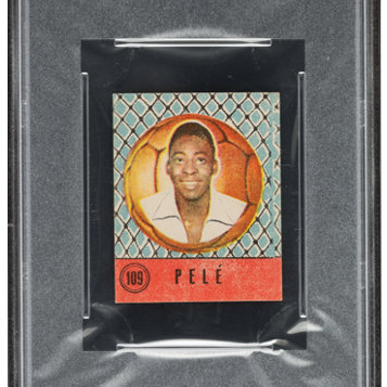 Pele. Last 3-5 years his early rook cards have grown in value steadily, last couple years they've hit some very healthy prices. I picked up mine over 10 years ago after scouting ebay in Brazil for about 3 years as well as other overseas auction points and looking for this particular issue. It's his most iconic in my opinion, but there are others that are a year or so earlier that bring just as strong prices and many of his Italian issues (Panini) bring good results too. 1958 Quigol Pele
