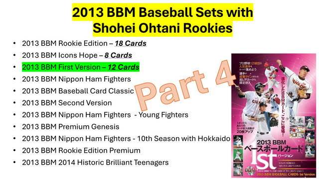 Part 4 on YouTube in my 2013 Japanese BBM Shohei Ohtani Rookie Card Videos. This video focuses on the popular 1st Version Wing Rookie Cards!
