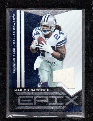 2010 Epix Marion Barber III game worn jersey - $1.00  2009-10 Elite Kobe Bryant Elite Series game used jersey #'d/99 - $9.00  2009-10 Elite Pau Gasol Elite Threads game worn jersey #'d/99 - $2.00  2010 Certified Todd Christensen Immortals game used jersey #'d/250 - $2.00  Quote: