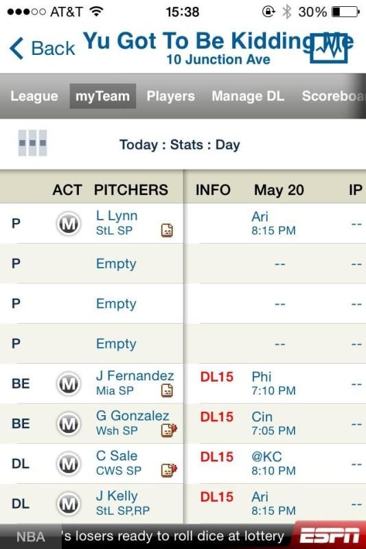 FYI, I changed my team name to "Bert Macklin" (BERT) from Parks and Rec, my "Yu Kang Clan" wasn't very fitting since I didn't get Kang. Also, I'm willing to trade Yu but it will take a lot.......I want those 40 points when he finally throws the Perfect Game this year!