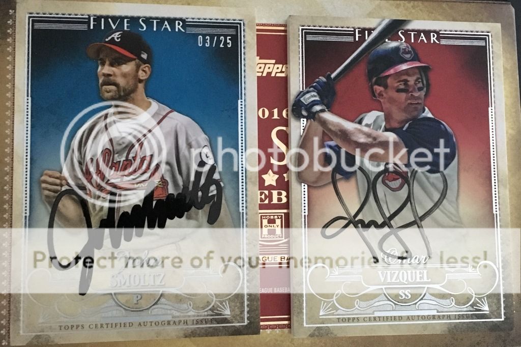 ![]() On one hand, I got a HOFer autograph and and Indians legend. However, I buy one box of Five Star per year and in 2015 I pulled the exact same John Smoltz rainbow auto and Marquis Grisson (another player from the 1997 Indians). I wouldn't mind trading for a HOF auto I DON'T have... |