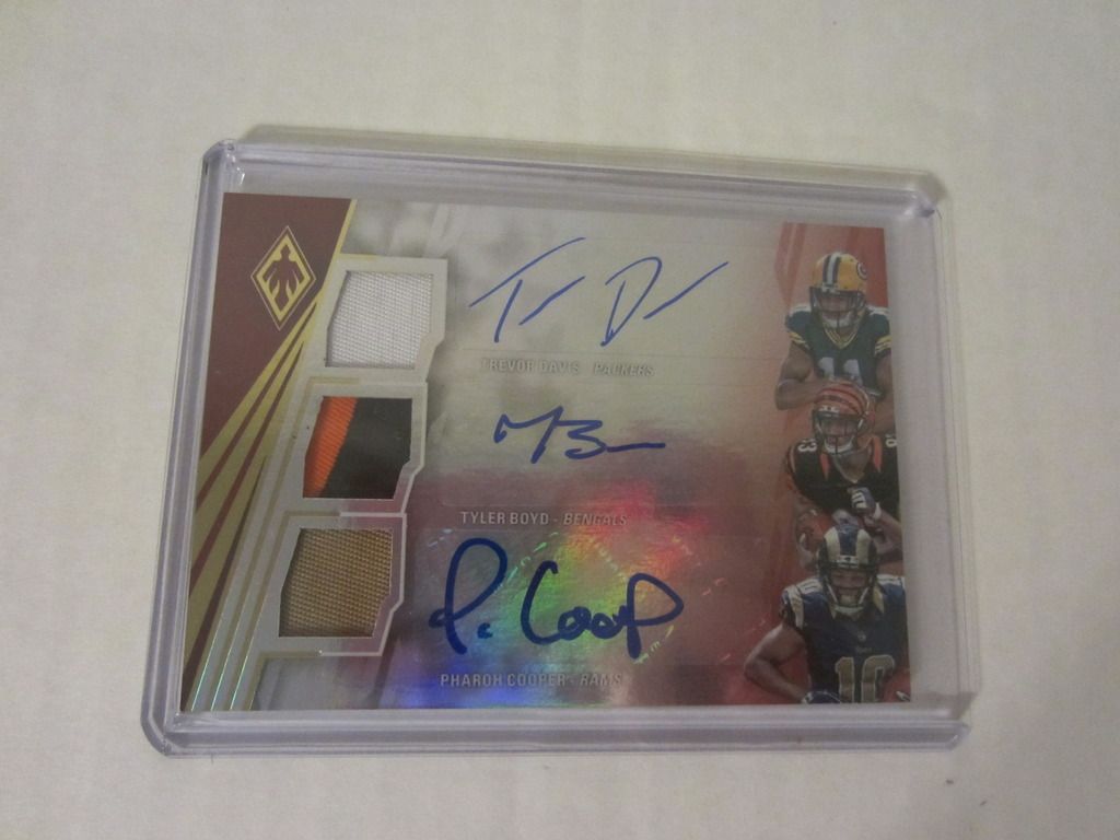 Unparalleled Derrick Henry Jersey Auto /49 - $40 ![]() Phoenix Trevor Davis, Tyler Boyd, Pharoh Cooper Triple Patch Auto /20 - $60 ![]() Phoenix Carson Wentz Jersey Auto /49 - $90 ![]() Five Star Eddie Lacy RPA /55 - $35 ![]() Limited Manning, Brees, Roethlisberger triple auto /5 - $400 ![]() Five Star Tony González logo /5 - $90 ![]() Brian Urlacher shield 1/1 - $300 ![]() Jamaal Charles 1/1 - $200 ![]() Demarco Murray /25 - $40